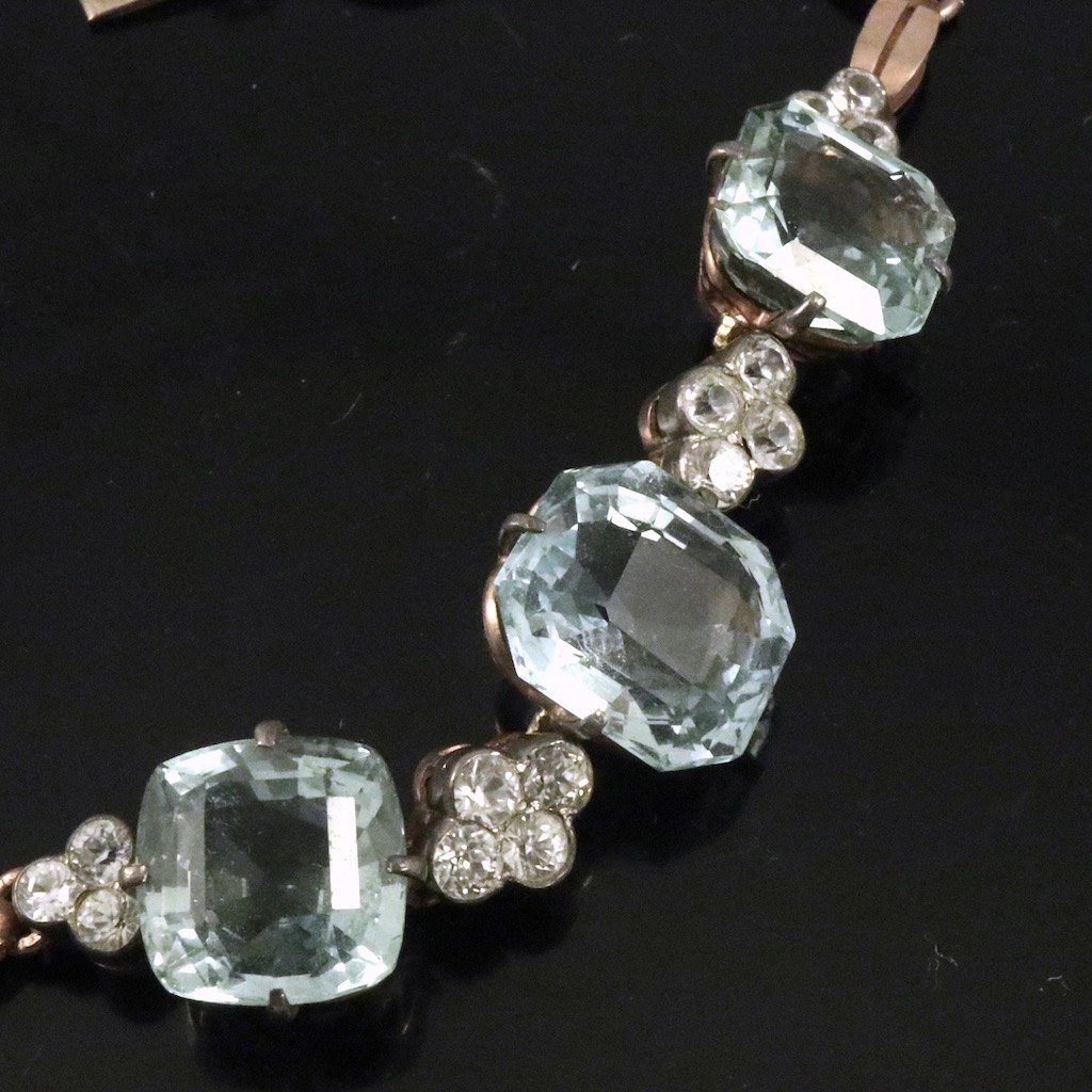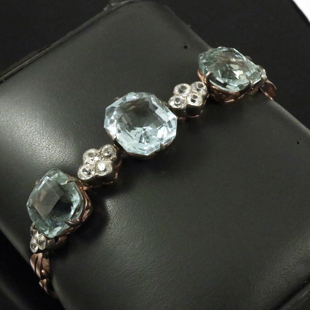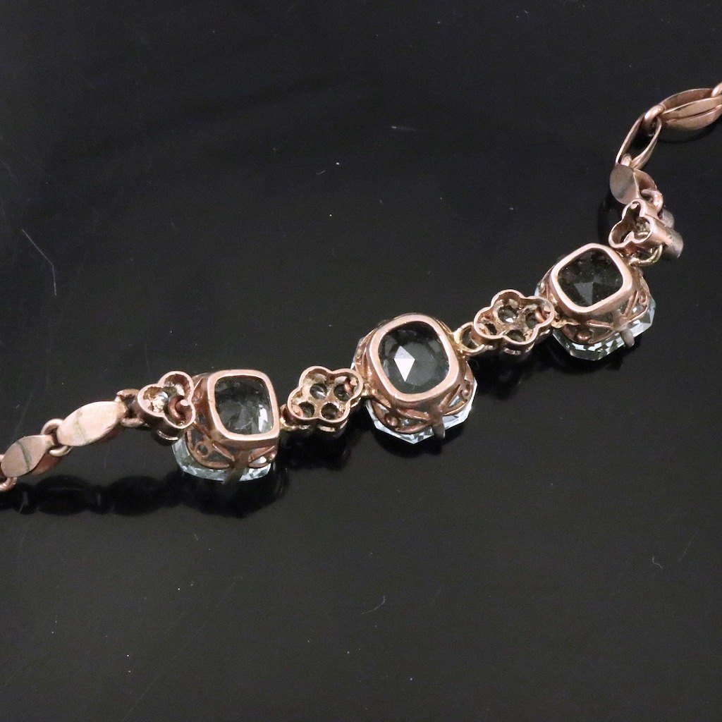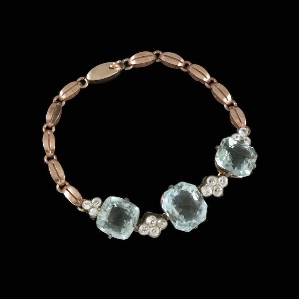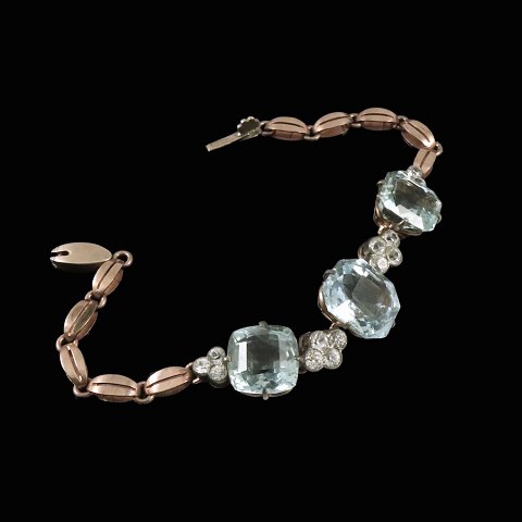 Armbånd i 14k guld med Aquamarin og diamanter.