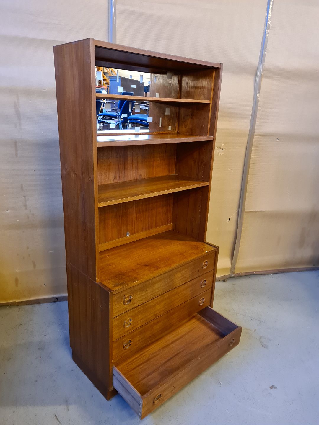 Reolsektion i fineret teaktræ, fra 1960erne.