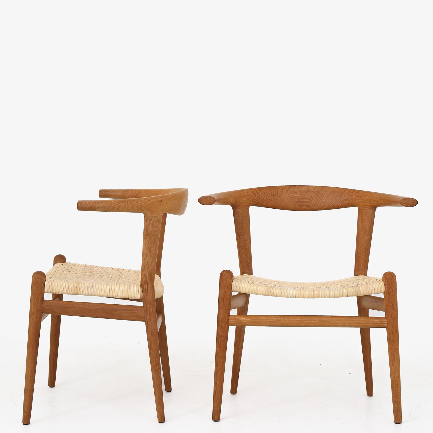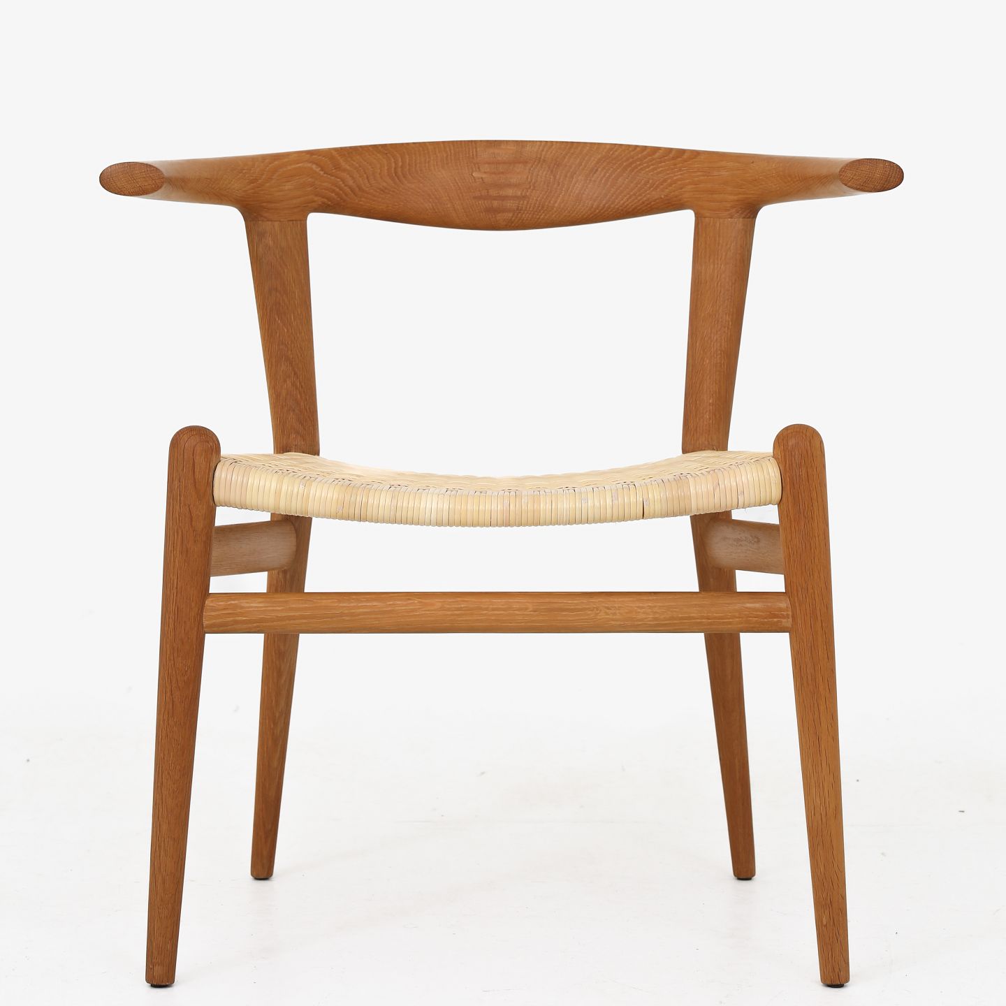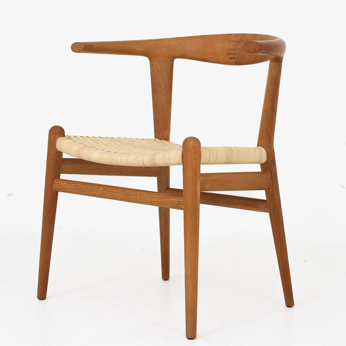 JH 518 - Rare 'Bull Chair' in solid oak and with seat of new, braided cane. Original label from manufacturer. Designed in 1961.