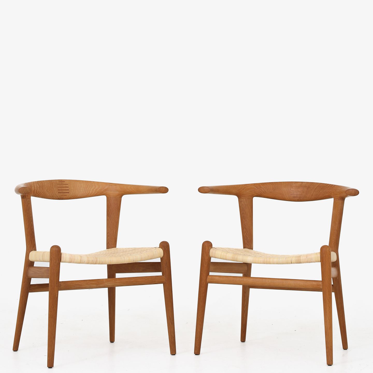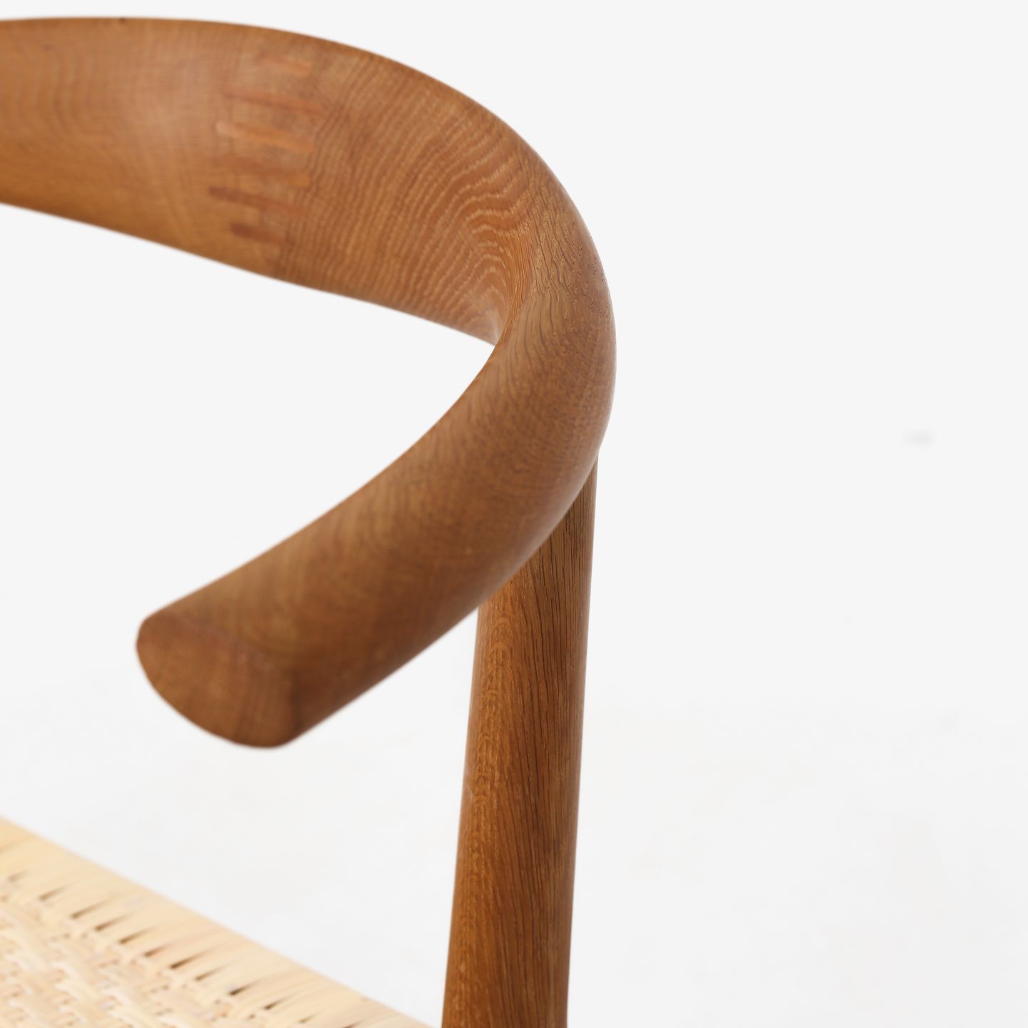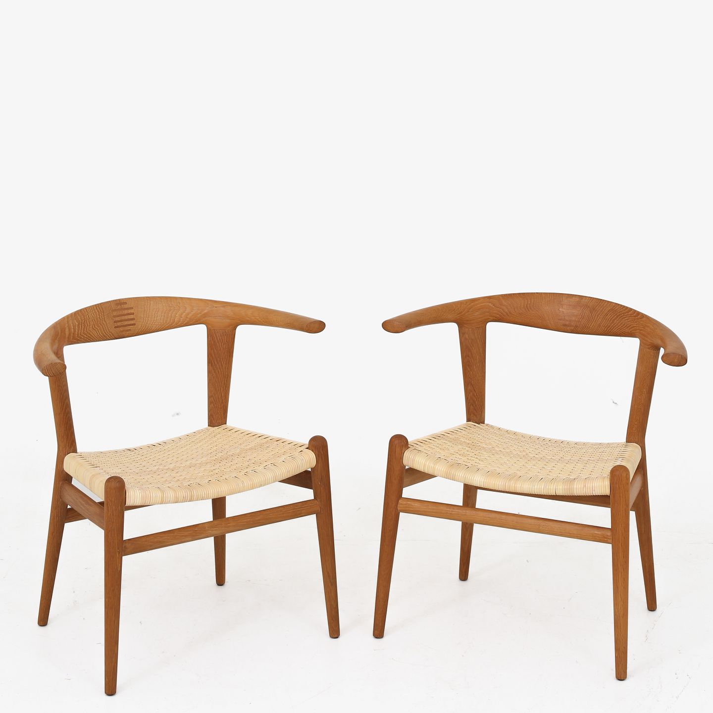JH 518 - Rare 'Bull Chair' in solid oak and with seat of new, braided cane. Original label from manufacturer. Designed in 1961.