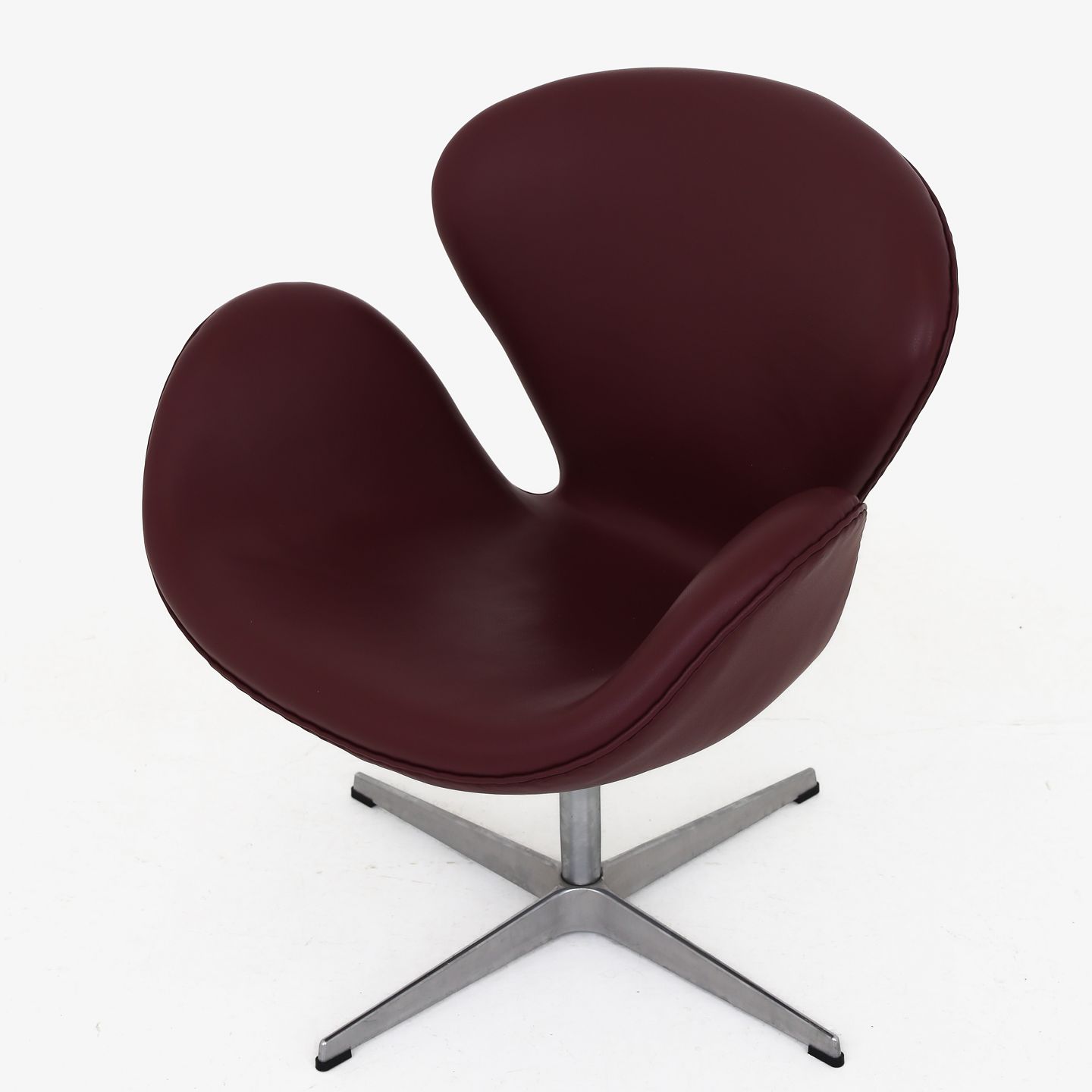 AJ 3320 - Reupholstered 'Swan' chair in 'Prestige' semi-aniline leather (colour: Wine Red) on steel frame. KLASSIK offers the chair in the leather of your choice. Please contact us for more information.