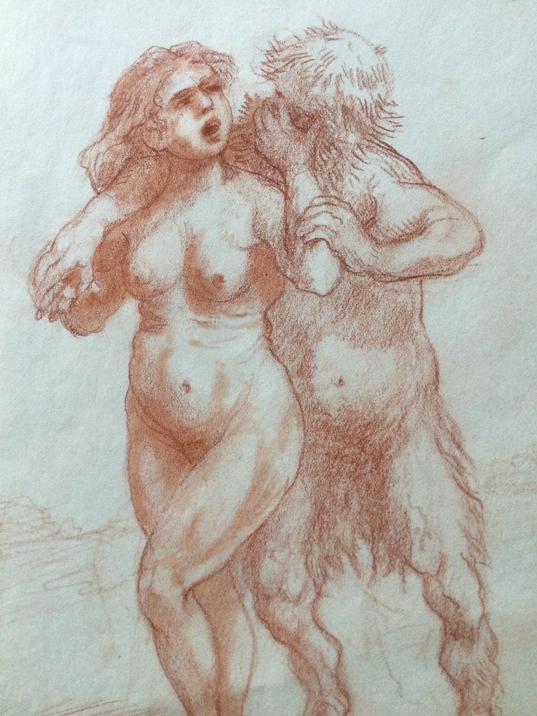 Tegning af Robert Büchtger - Nøgen kvinde og trold.
