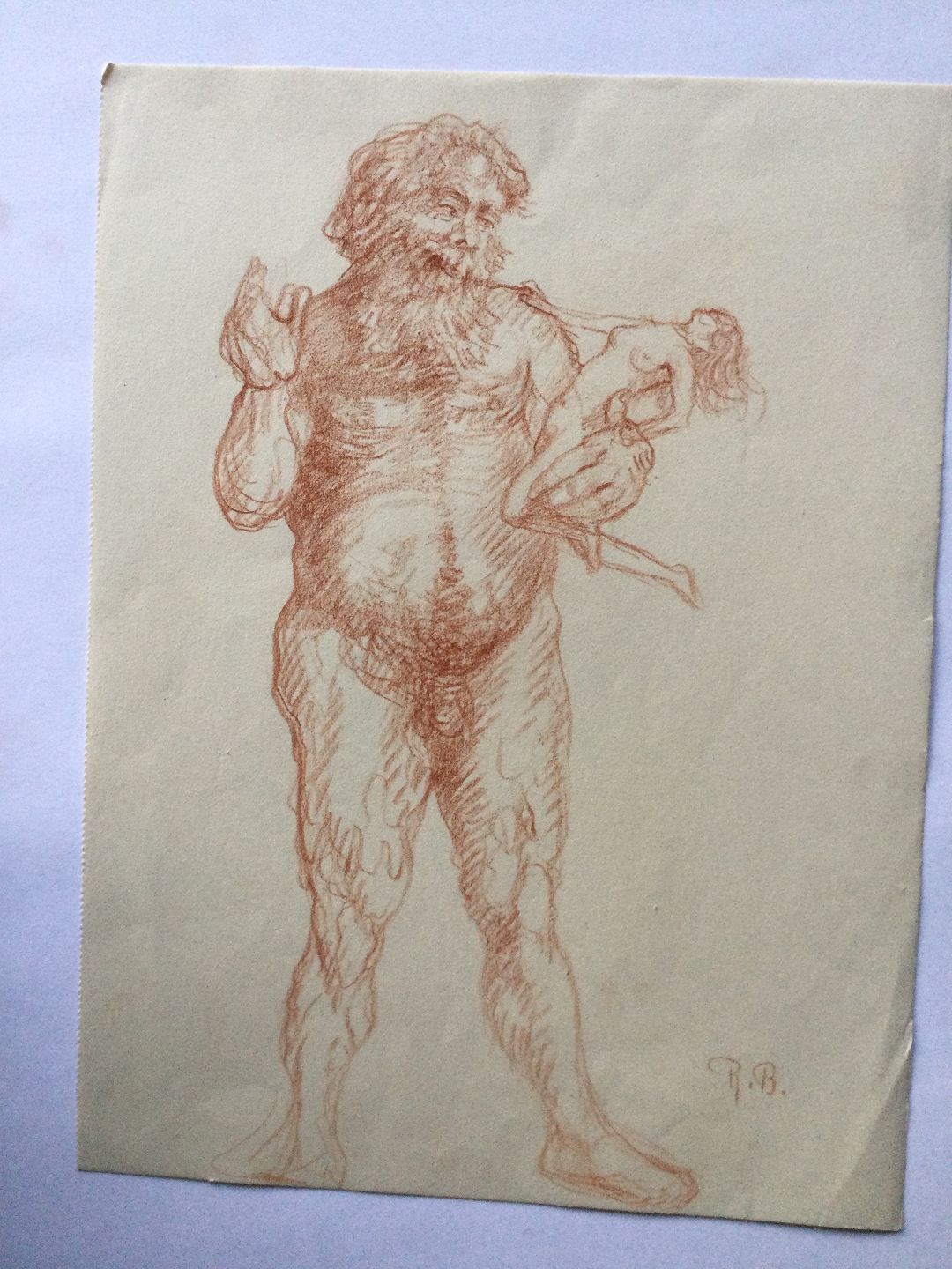 Tegning af Robert Büchtger - trold med nøgen kvinde