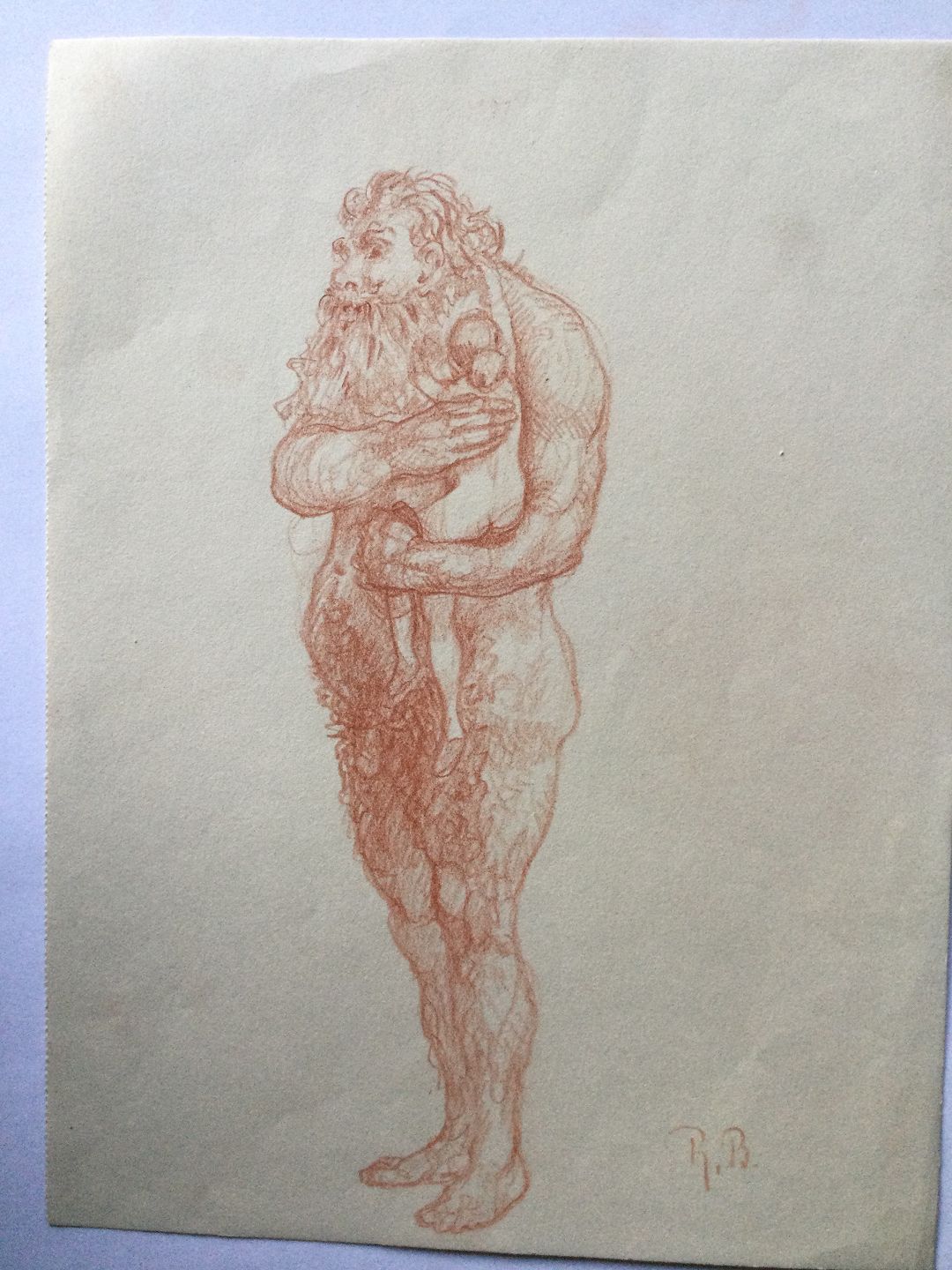 Tegning af Robert Büchtger - trold med nøgen kvinde