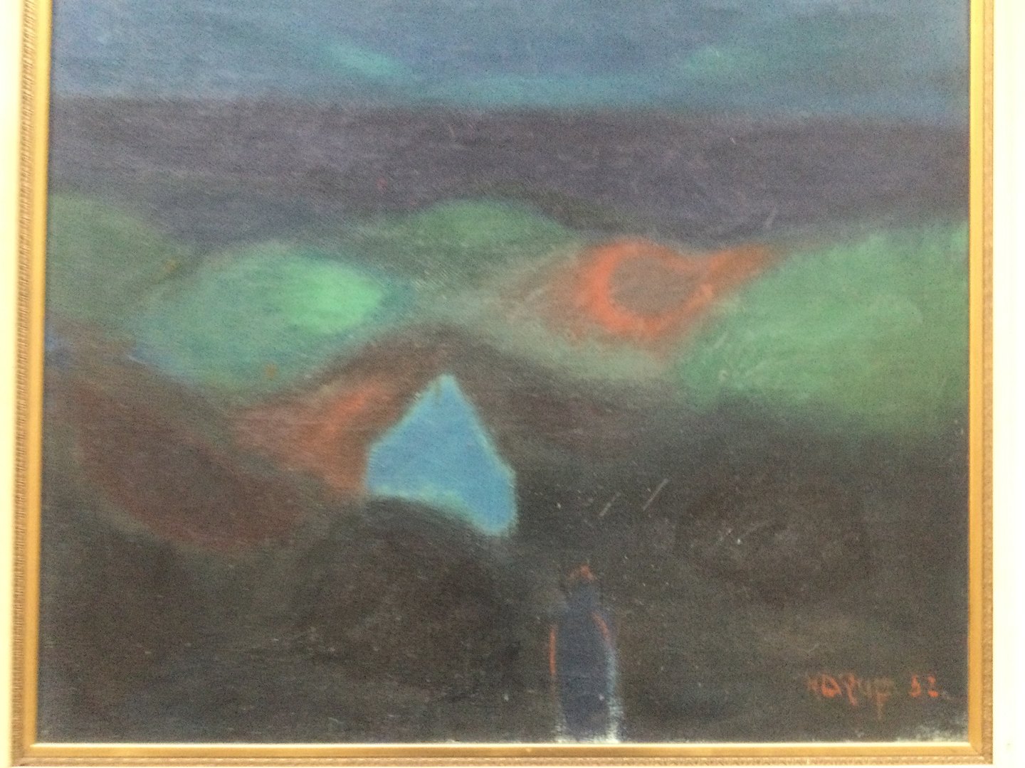 Maleri af Knud Horup - Person i mørkt landskab 1952.