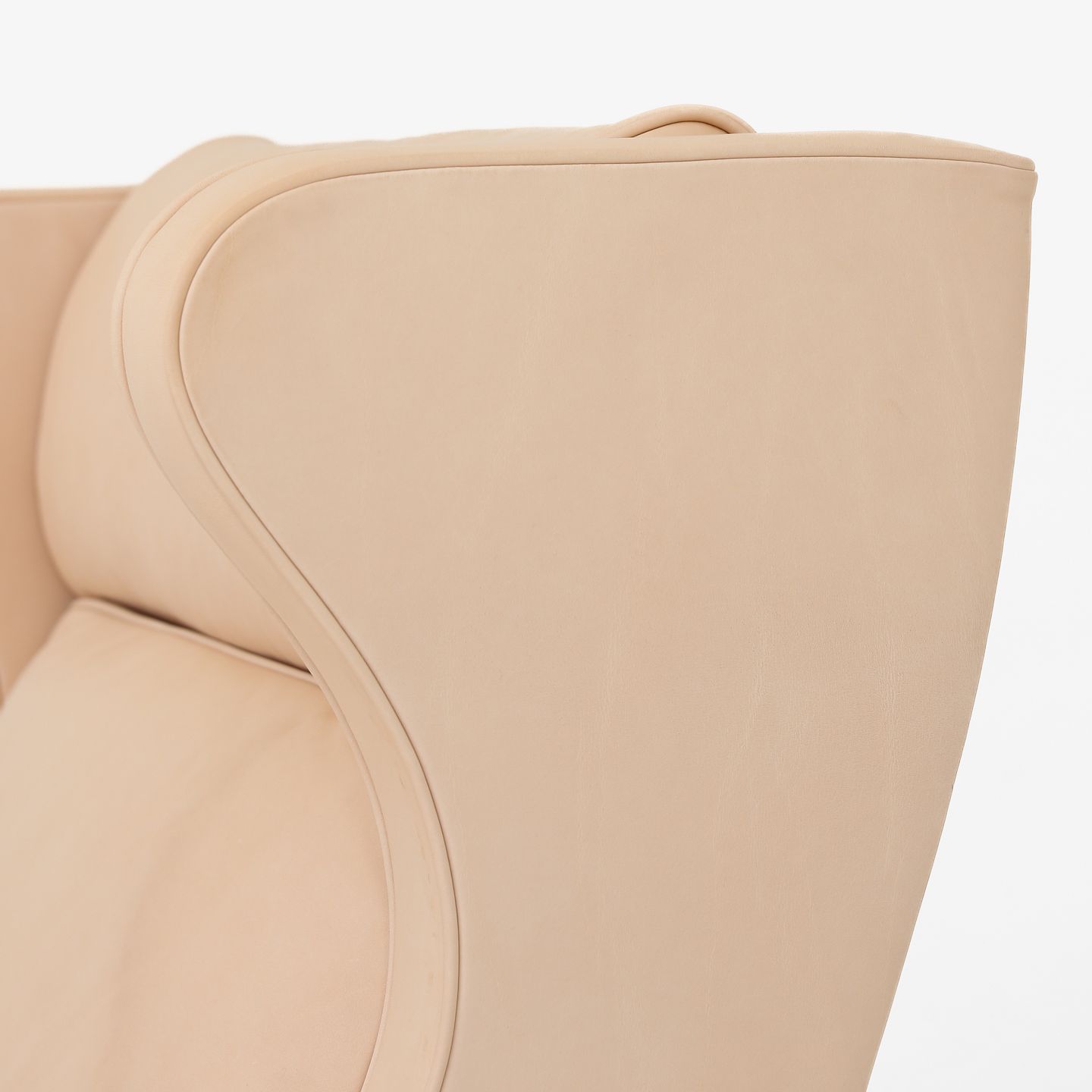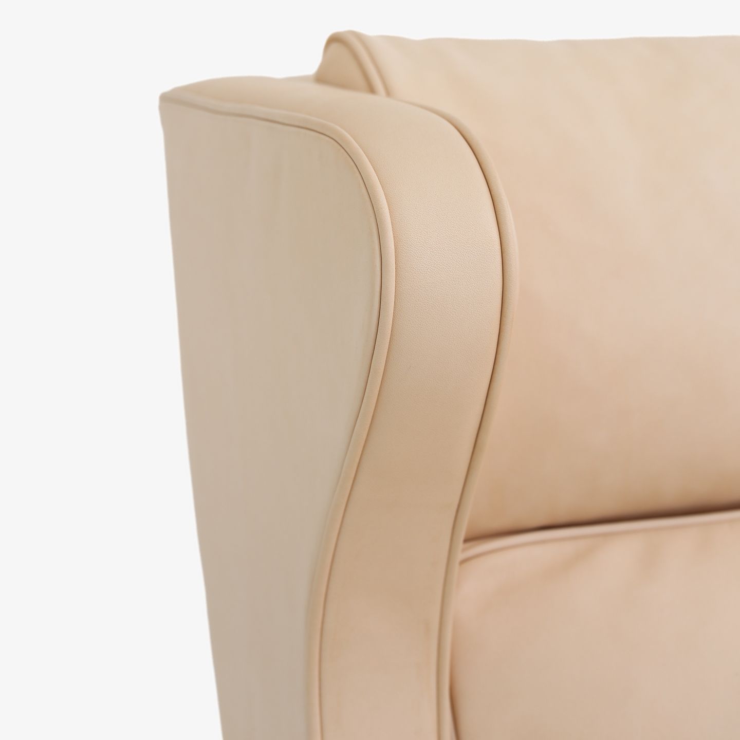 BM 2204 - Nybetrukket Øreklapstol i naturlæder. KLASSIK tilbyder Øreklapstolen i tekstil eller læder efter eget valg. Kontakt os venligst for mere information.