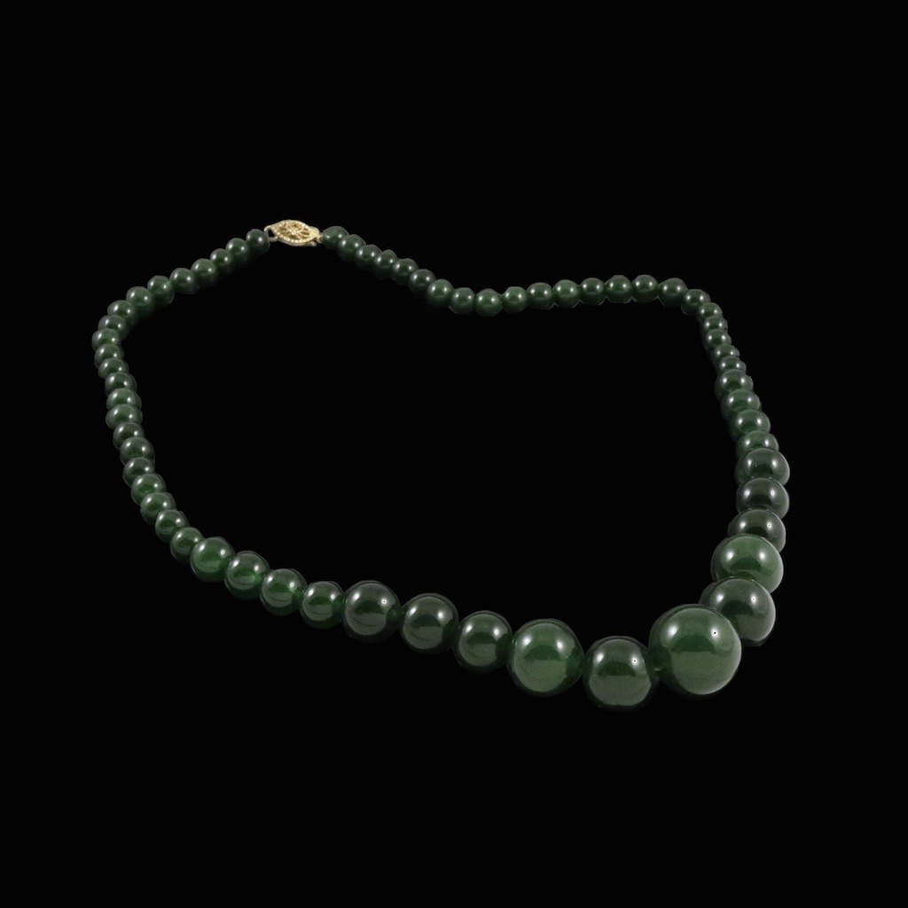Jadeite Bead Necklace with Gold plated Clasp. |