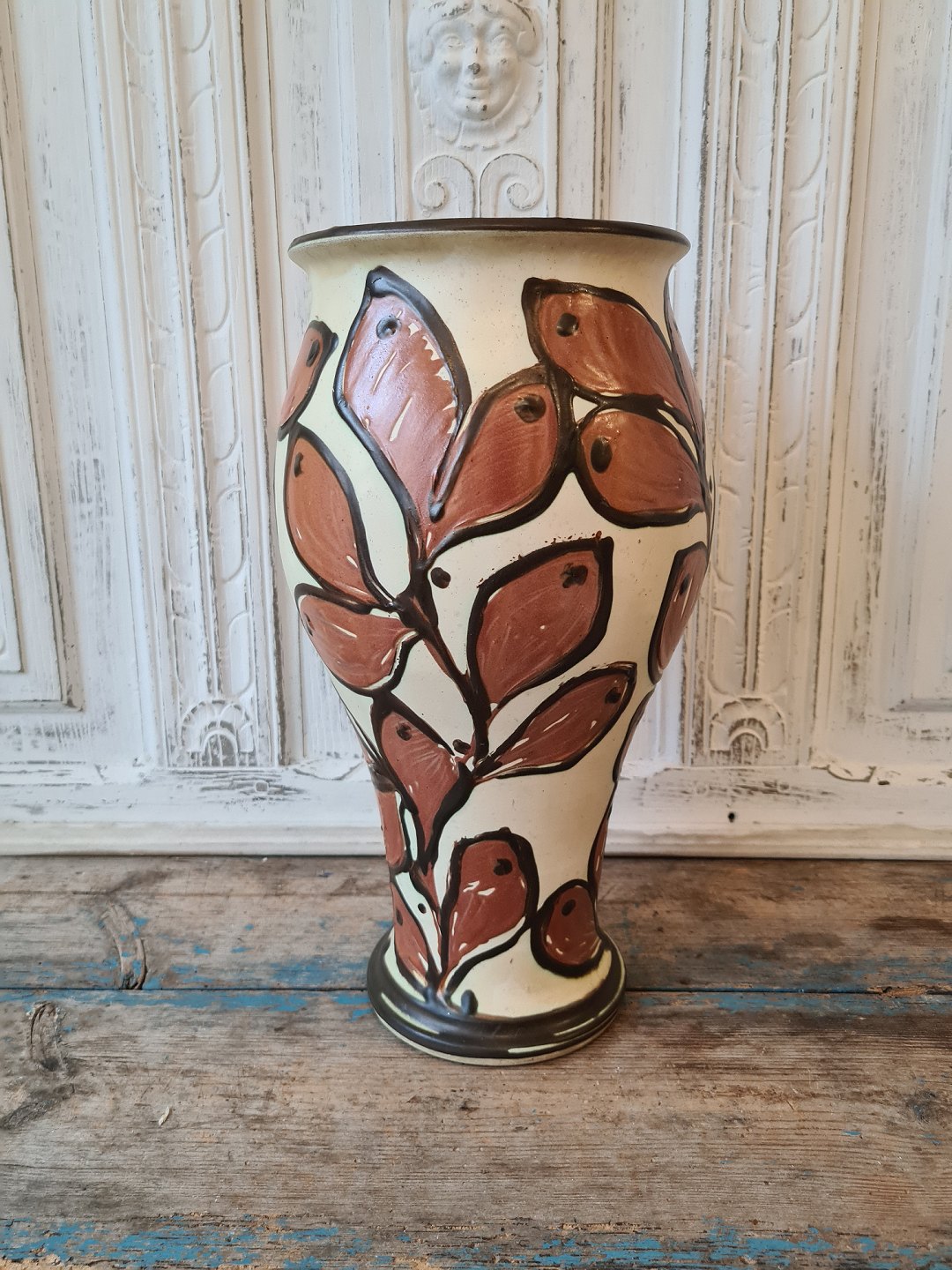 Kähler - stor kohornsbemalet vase dekoreret med blade