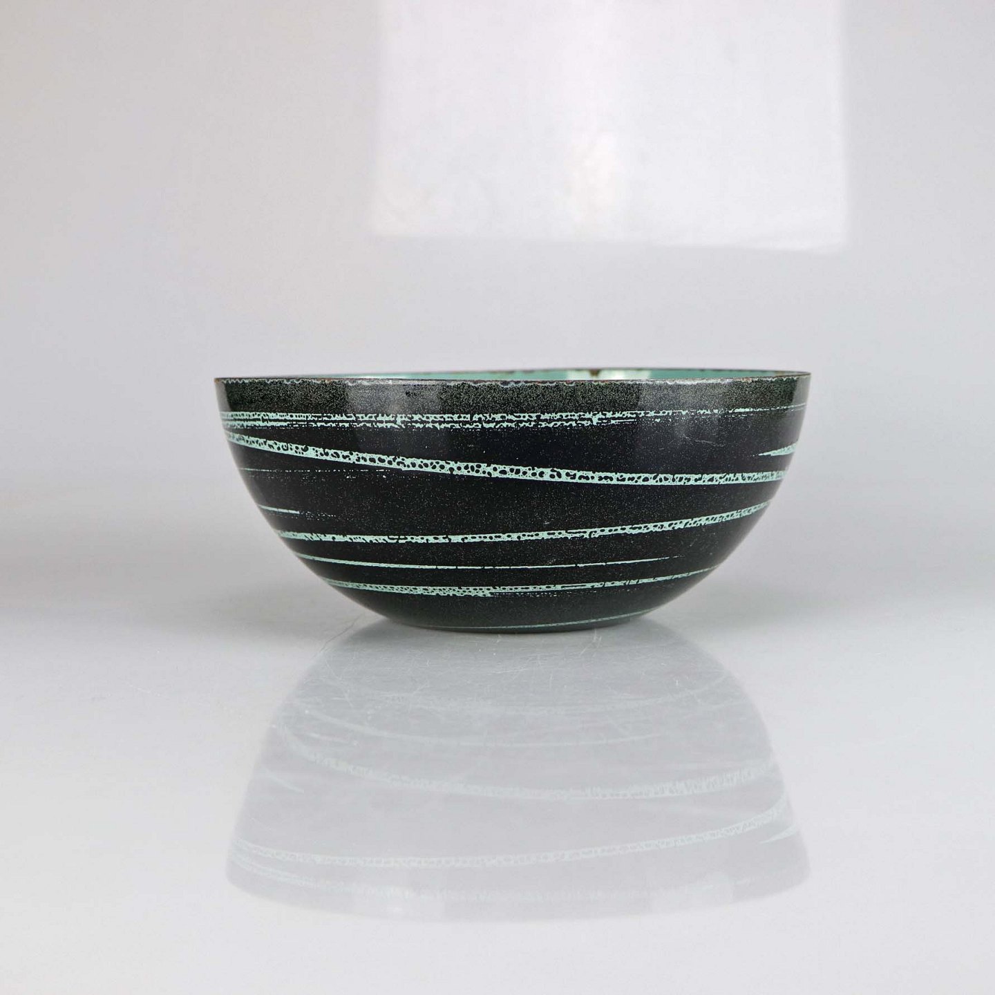 Original Cathrineholm emaljeret skål fra serien Saturn i sort og søgrøn