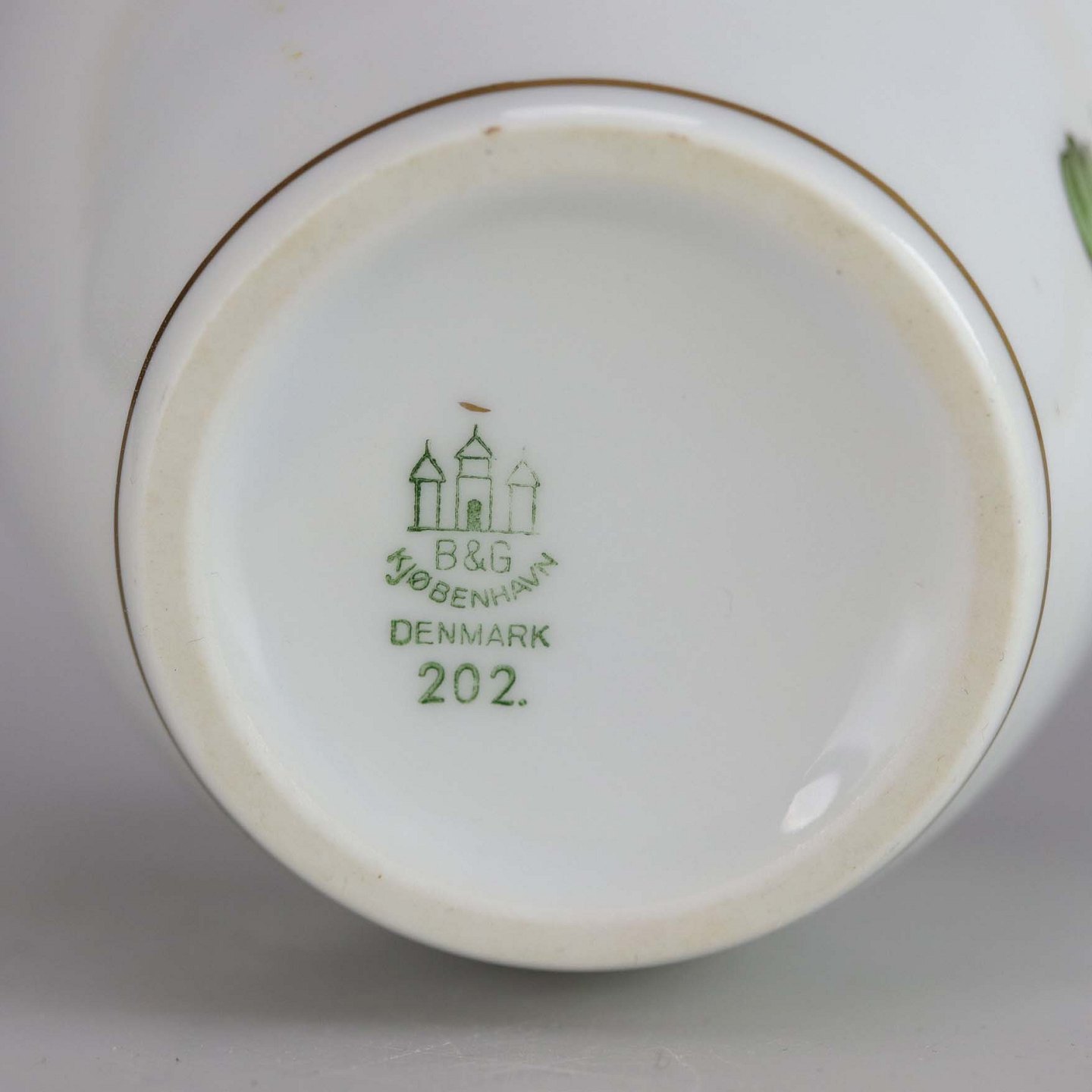 Hvidt porcelæn i skelform med dekoration af gule blomster og guldkant