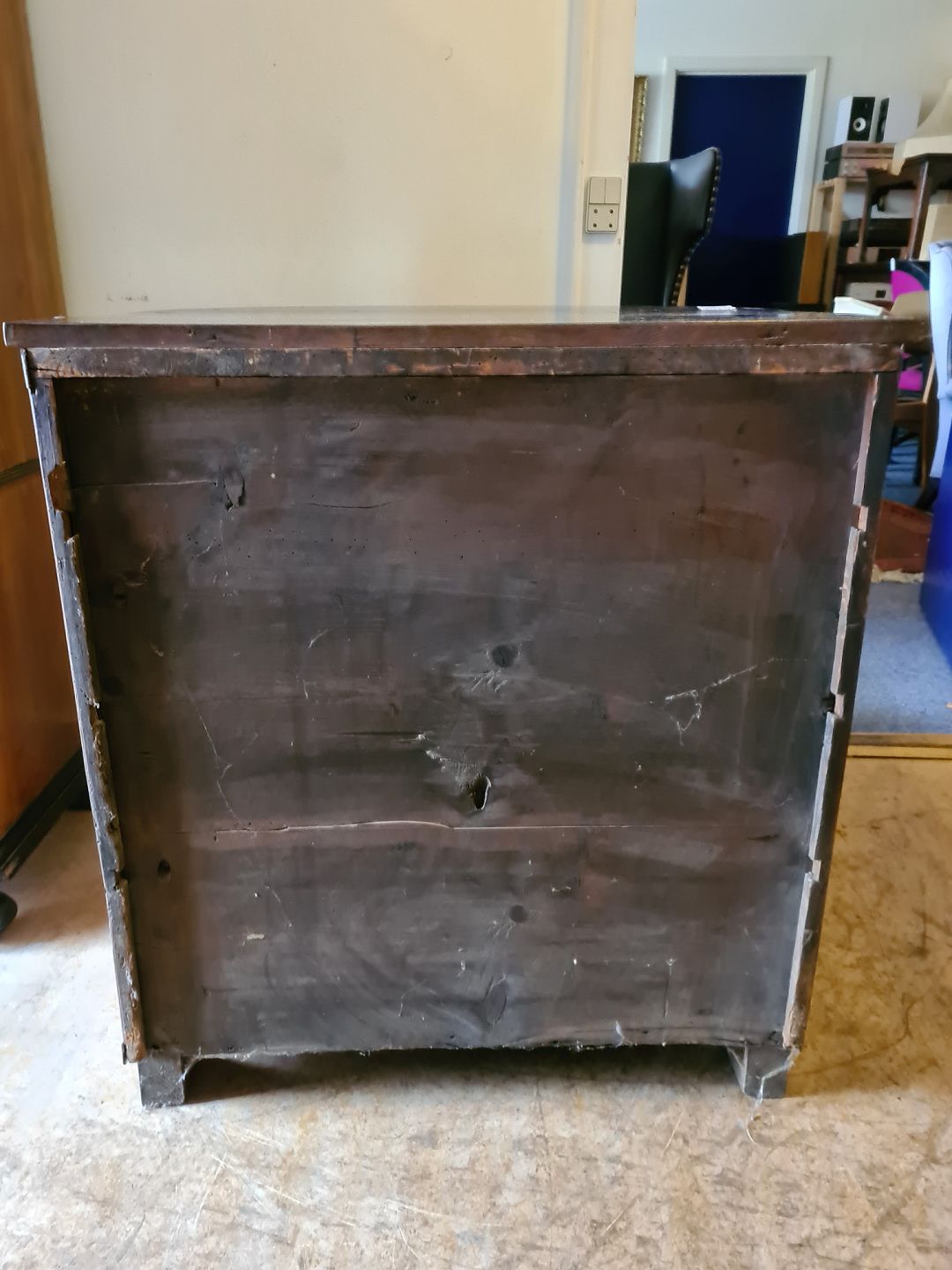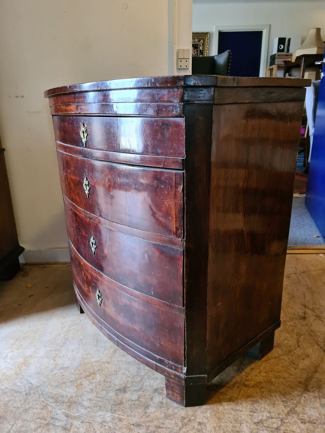 Kommode med buet front i fineeret mahogni, fra 1900erne.