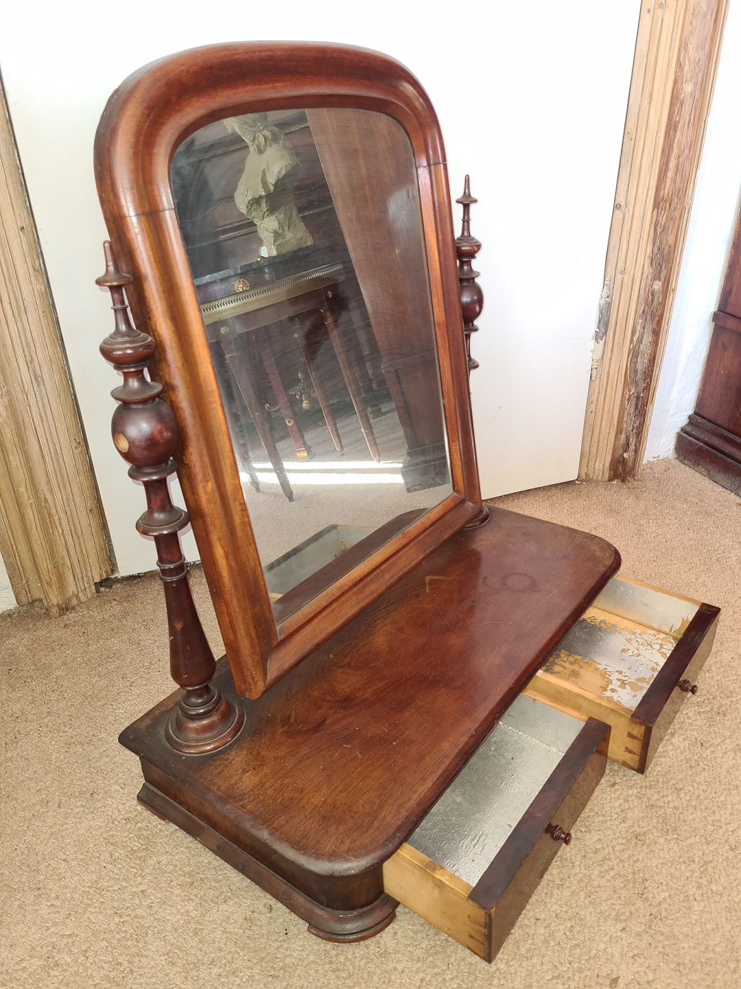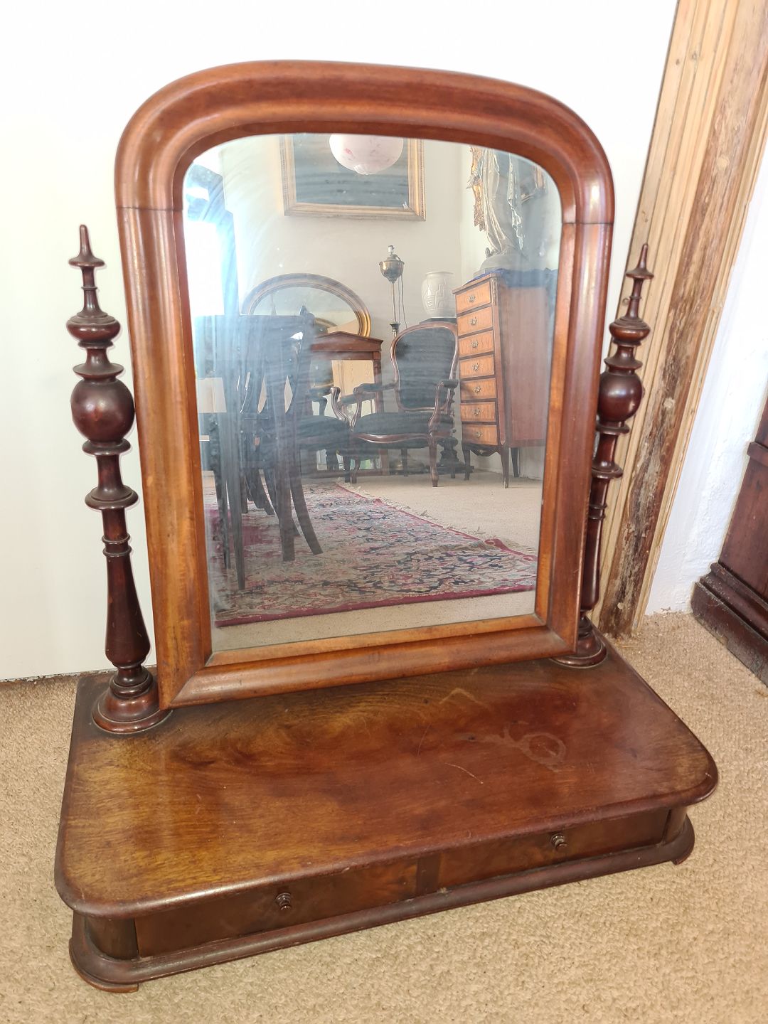 Flot bordspejl i mahogni fra 1920´erne. Fremstår fuldt funktionsdygtigt og velholdt uden nævneværdige brugsspor.