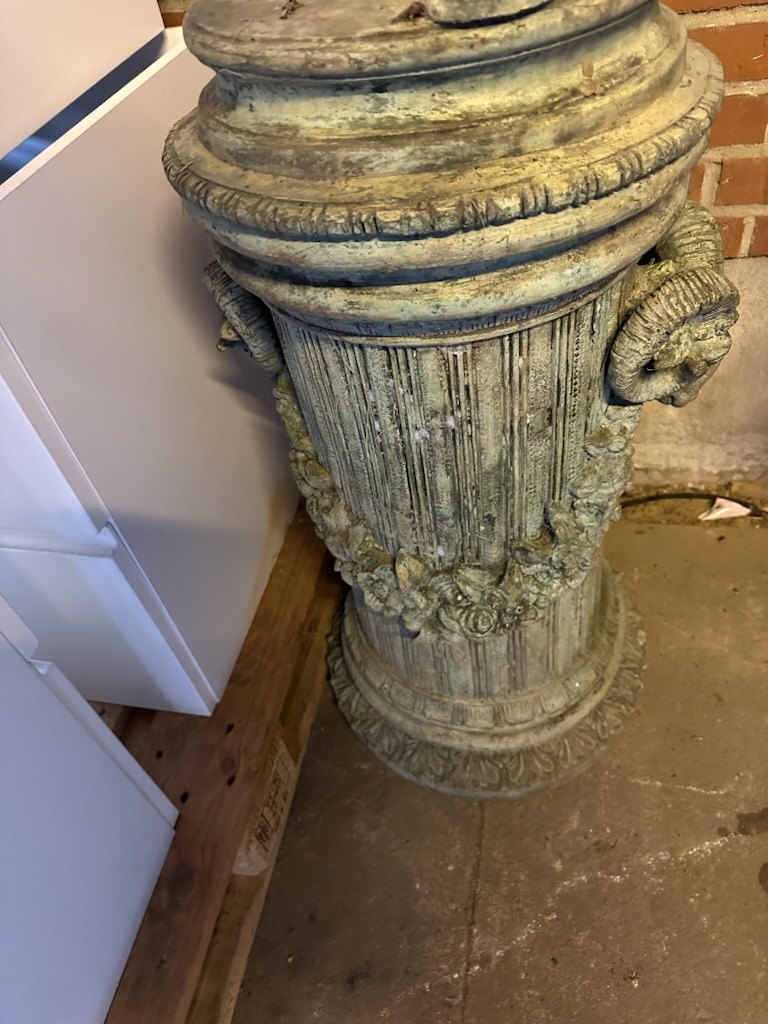 Sokkel flankeret med blomster ranker og Bukkehoveder.
