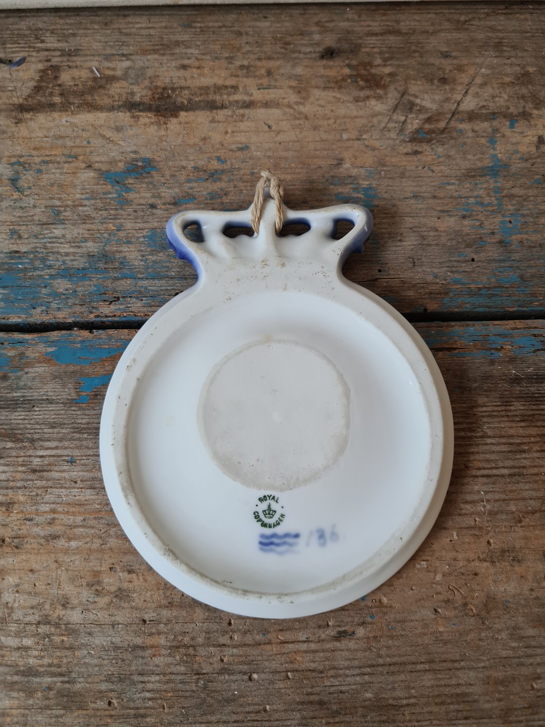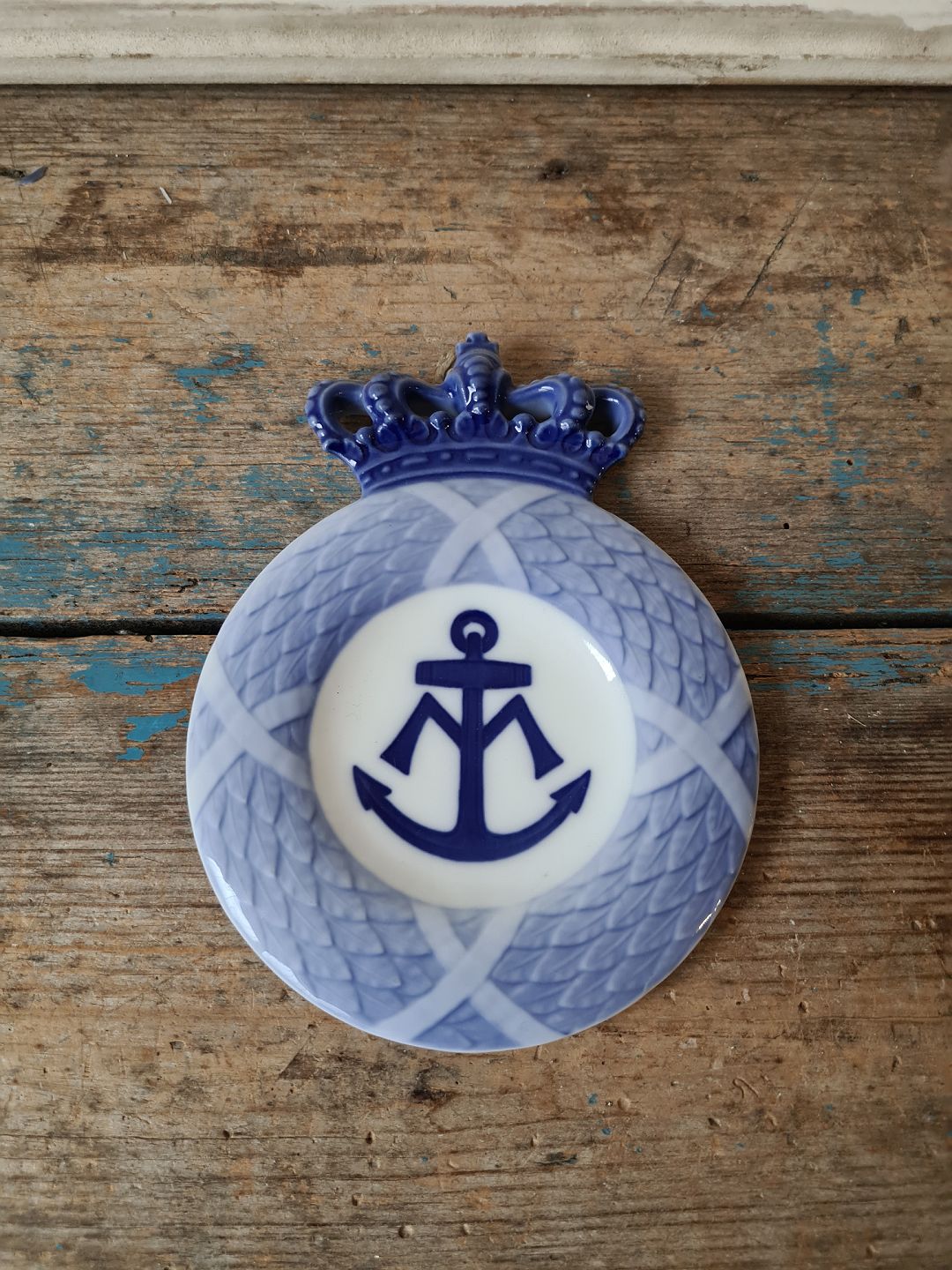 Royal Copenhagen Mindeplatte fra 1909 - Prinsesse Maries mindeplatte - Kronet krans med bogstavet M samt et anker.