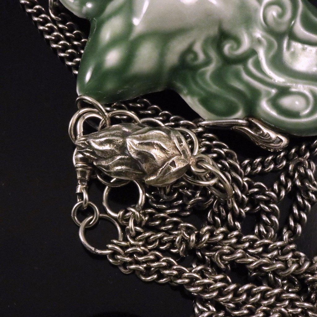 Kæde og sølvmontering stemplet AM, 925S. (A. Michelsen.)