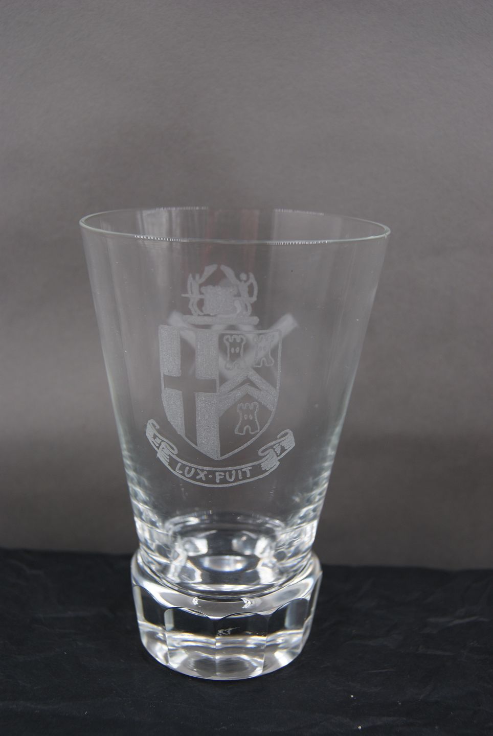Frimurer glas eller Loge glas, Ølglas dekoreret med slebne symboler, på kantsleben fod.