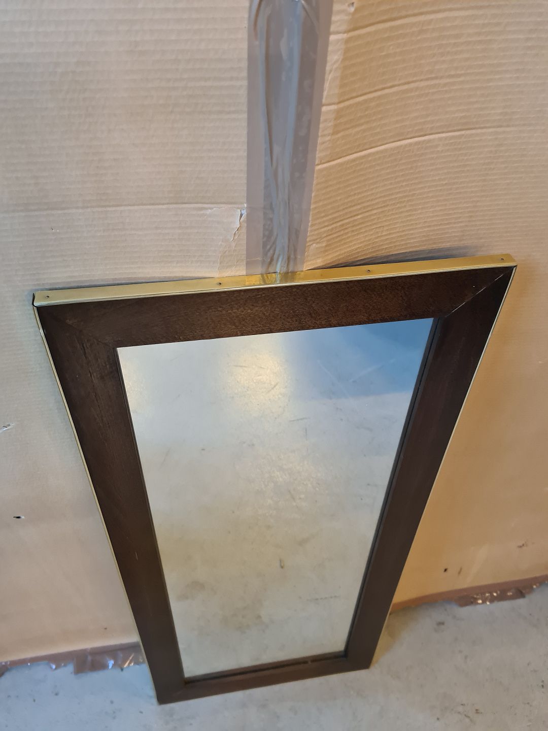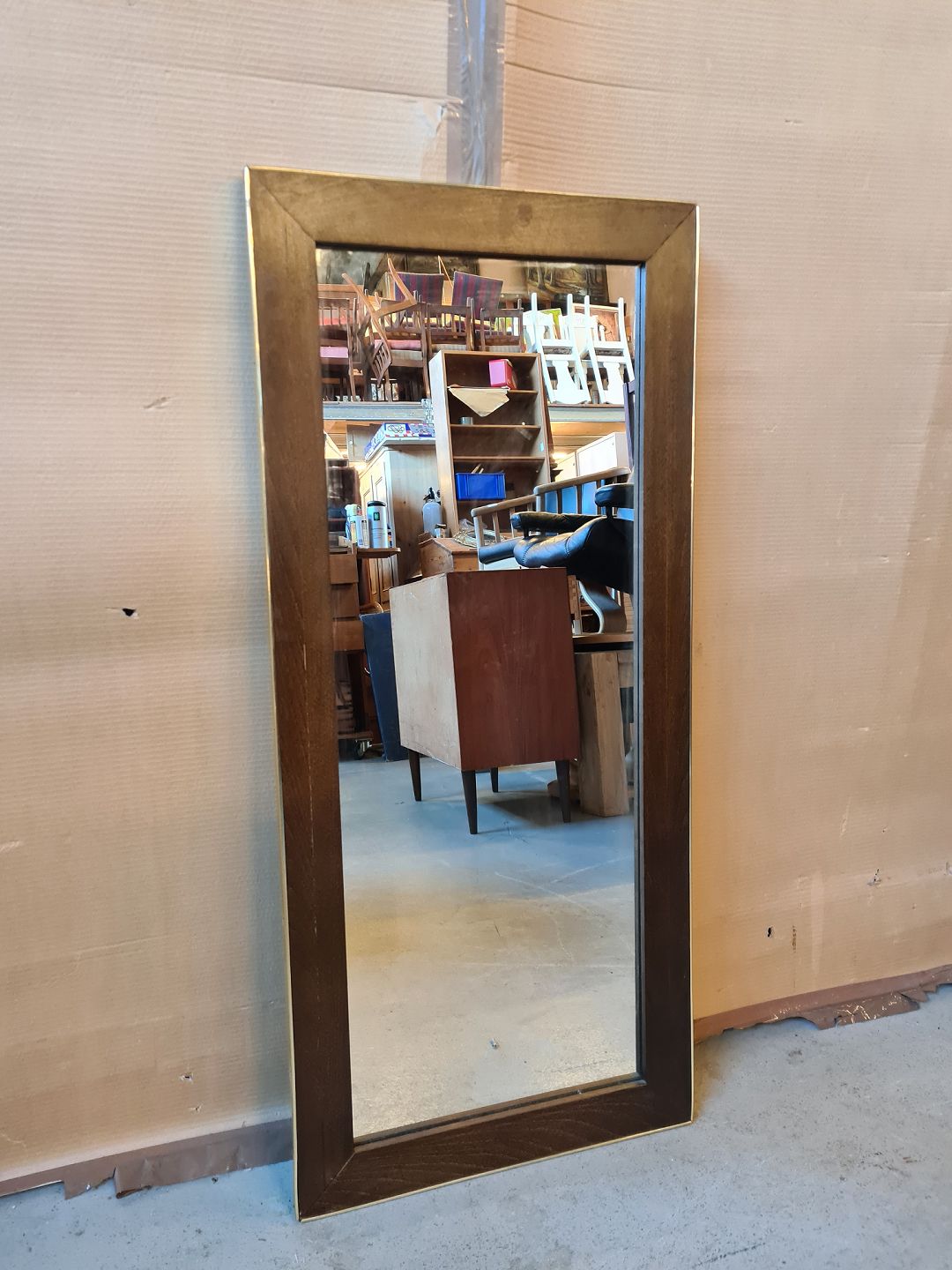 Spejl i fineret egetræ med metalkant, fra 1980erne.