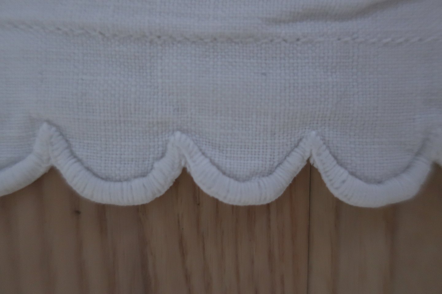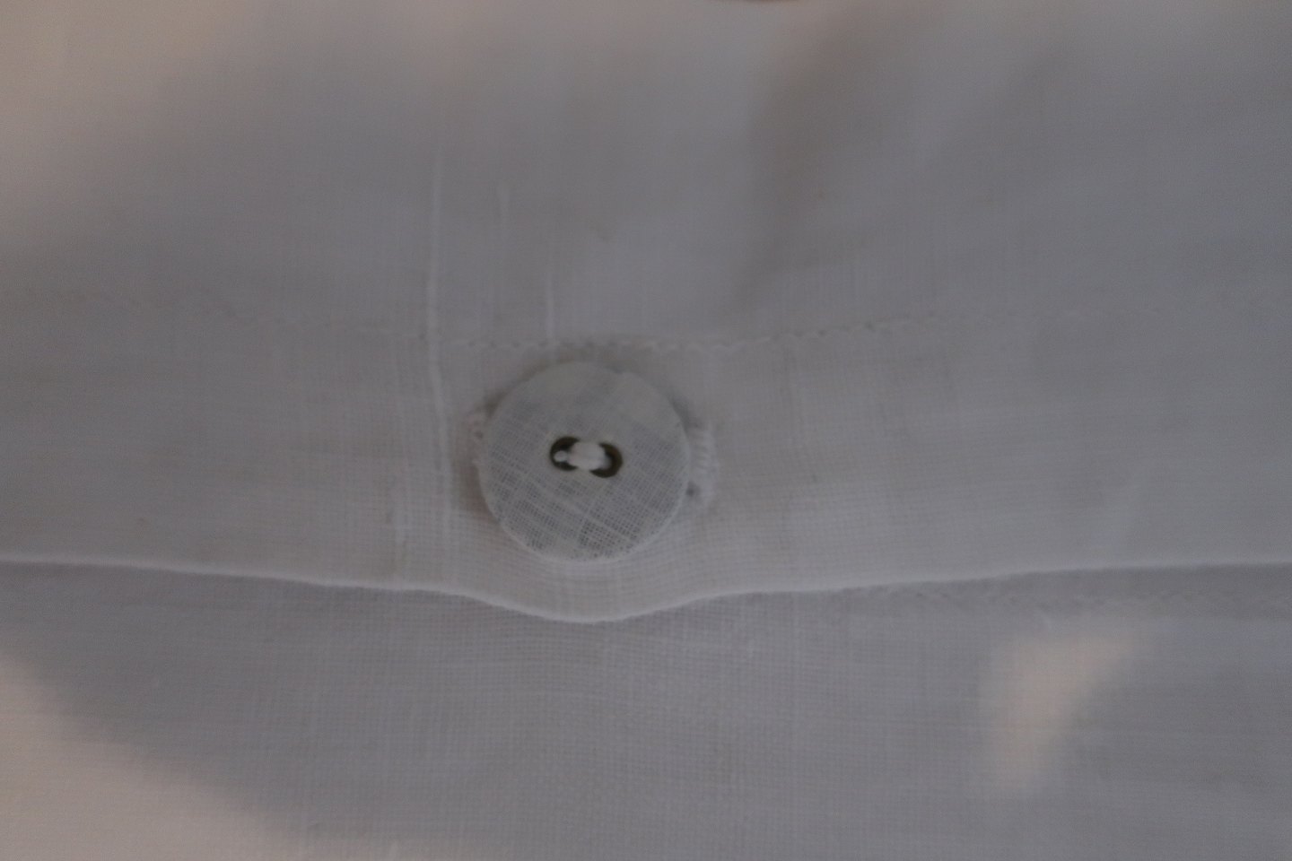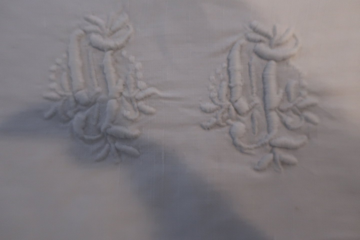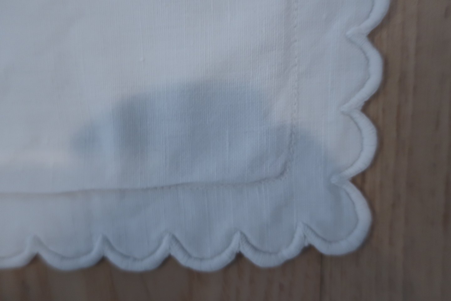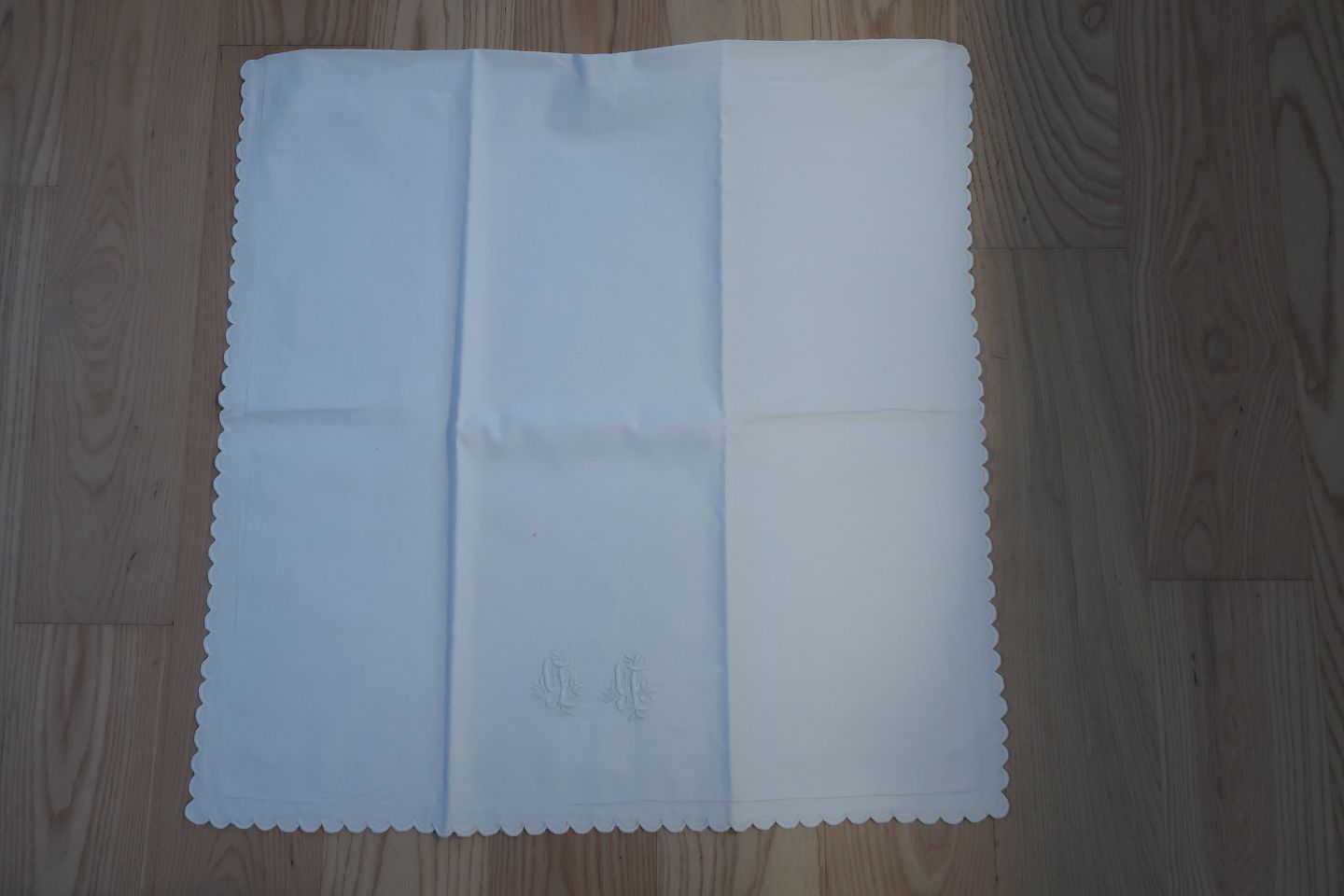 Pudevår med håndbroderede initialer samt tunger i kanter, - og så er der stofknapper