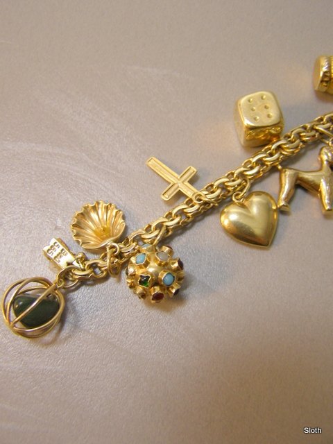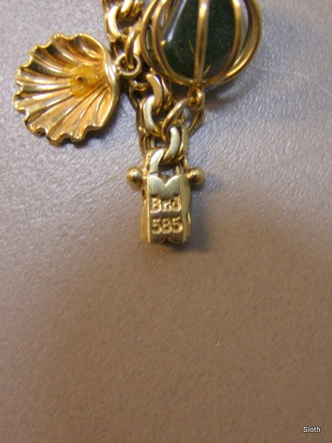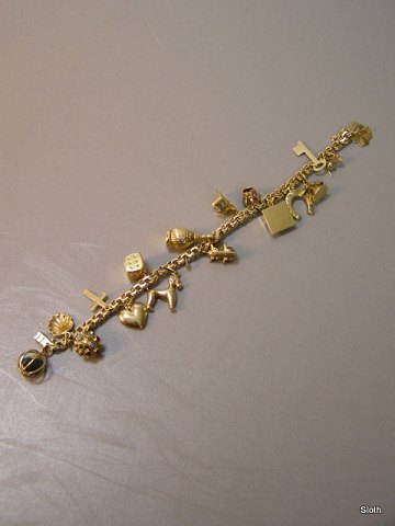 14 Karat Guldarmbånd med Charms 17 stk. L: 18 cm.