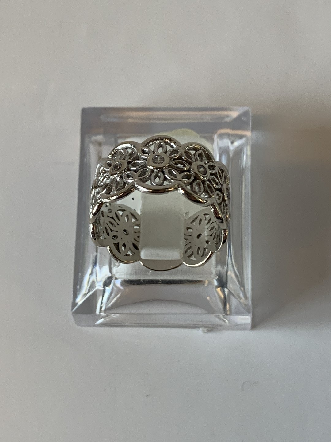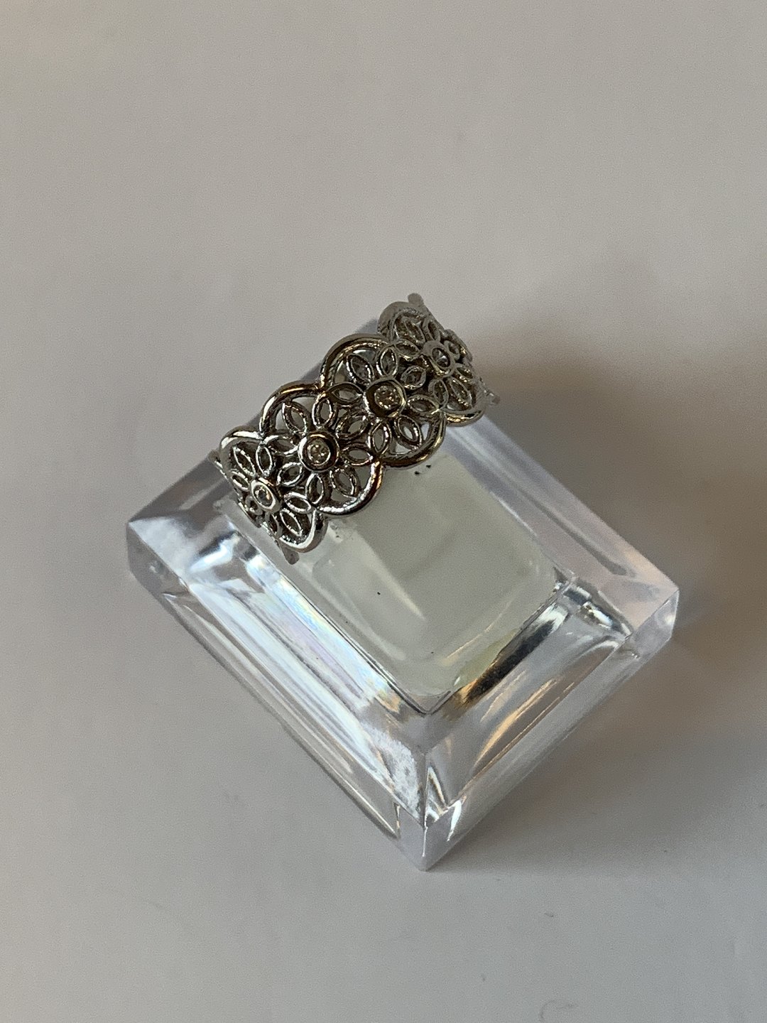 14 karat hvidgulds ring, med indlagte klare sten