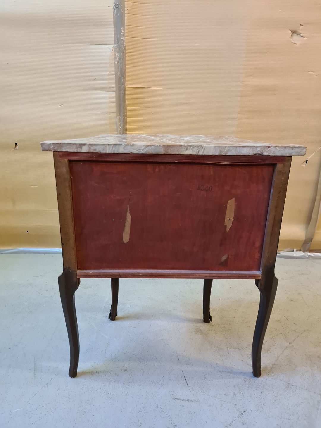 Kommode i fineret mahogni med marmorplade, fra 1980erne.