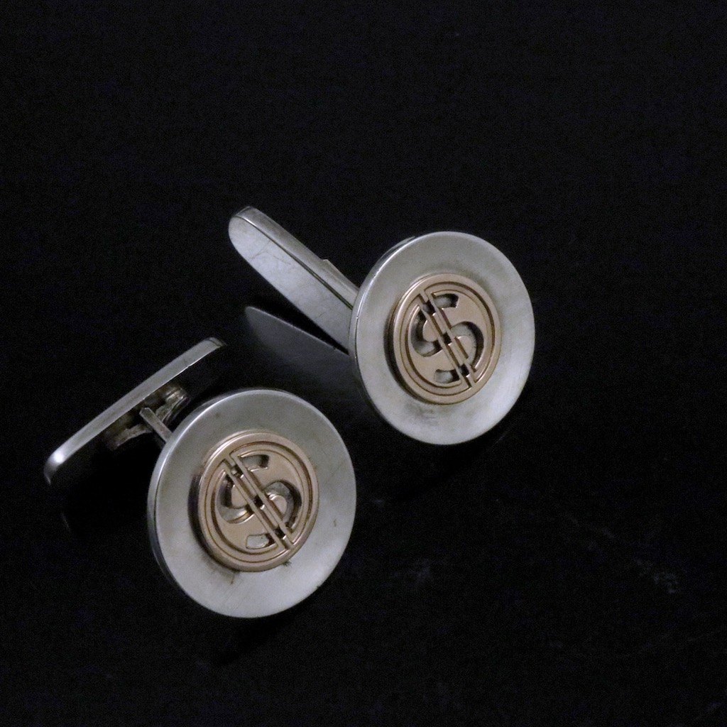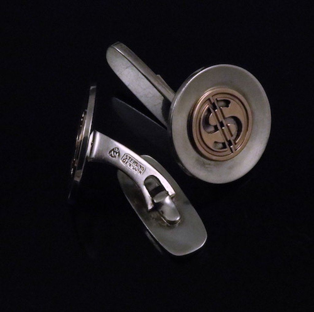 A. Michelsen. Manchetknapper i sterlingsølv 14k guld.