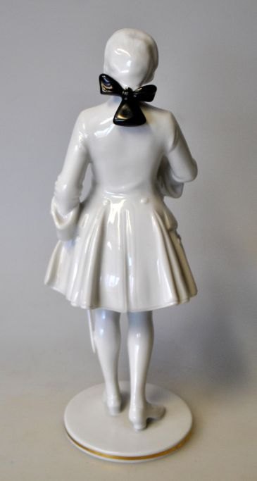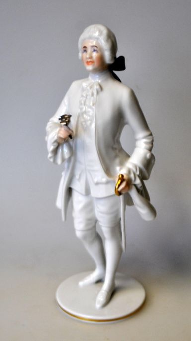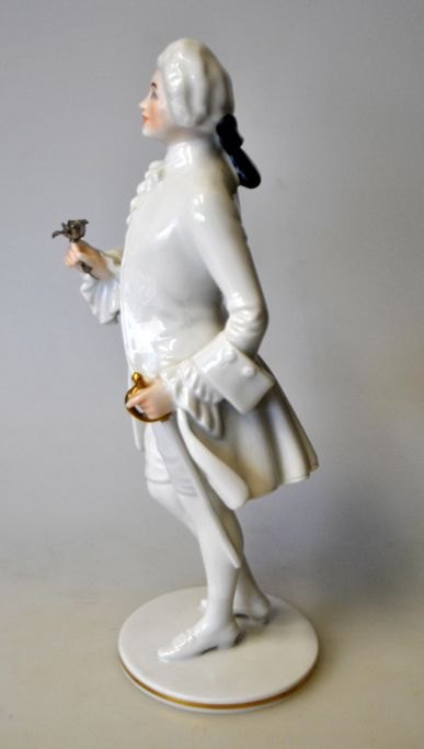 Figure, Rose the knight, Augarten, Vienna, 20th century Austria. White porcelain with partial painting and gilding. Model number: 1500. On round plinth. H: 20.5 cm.