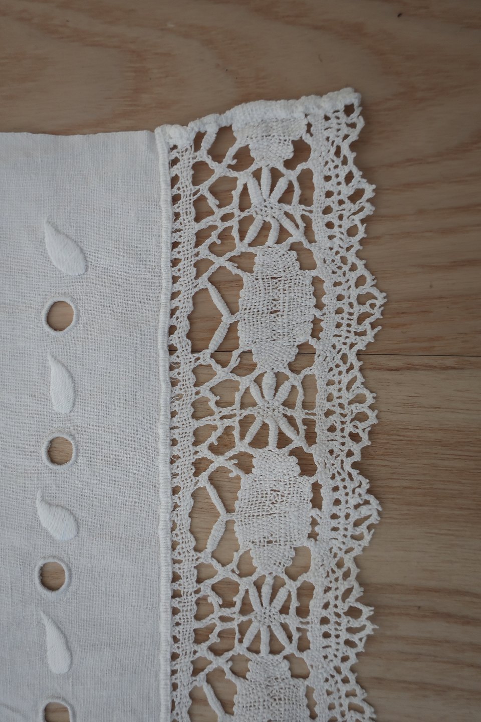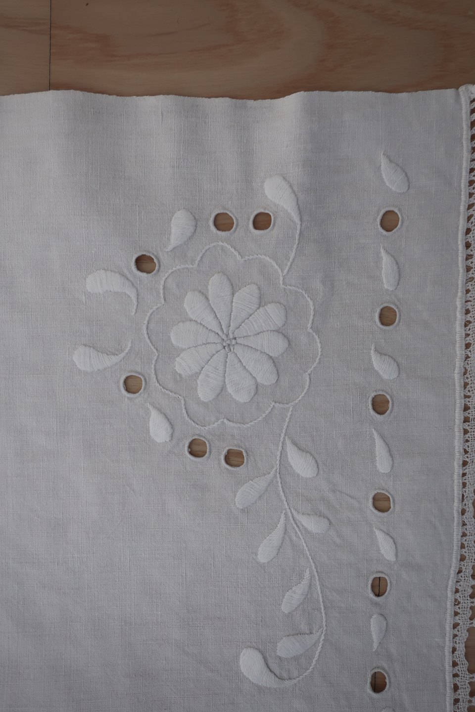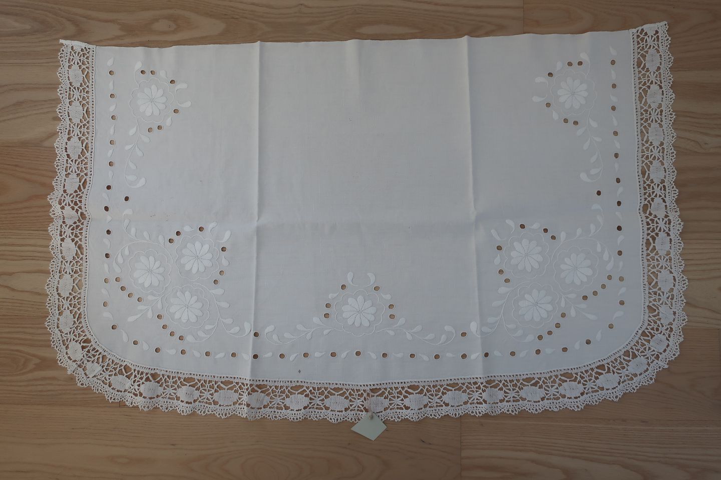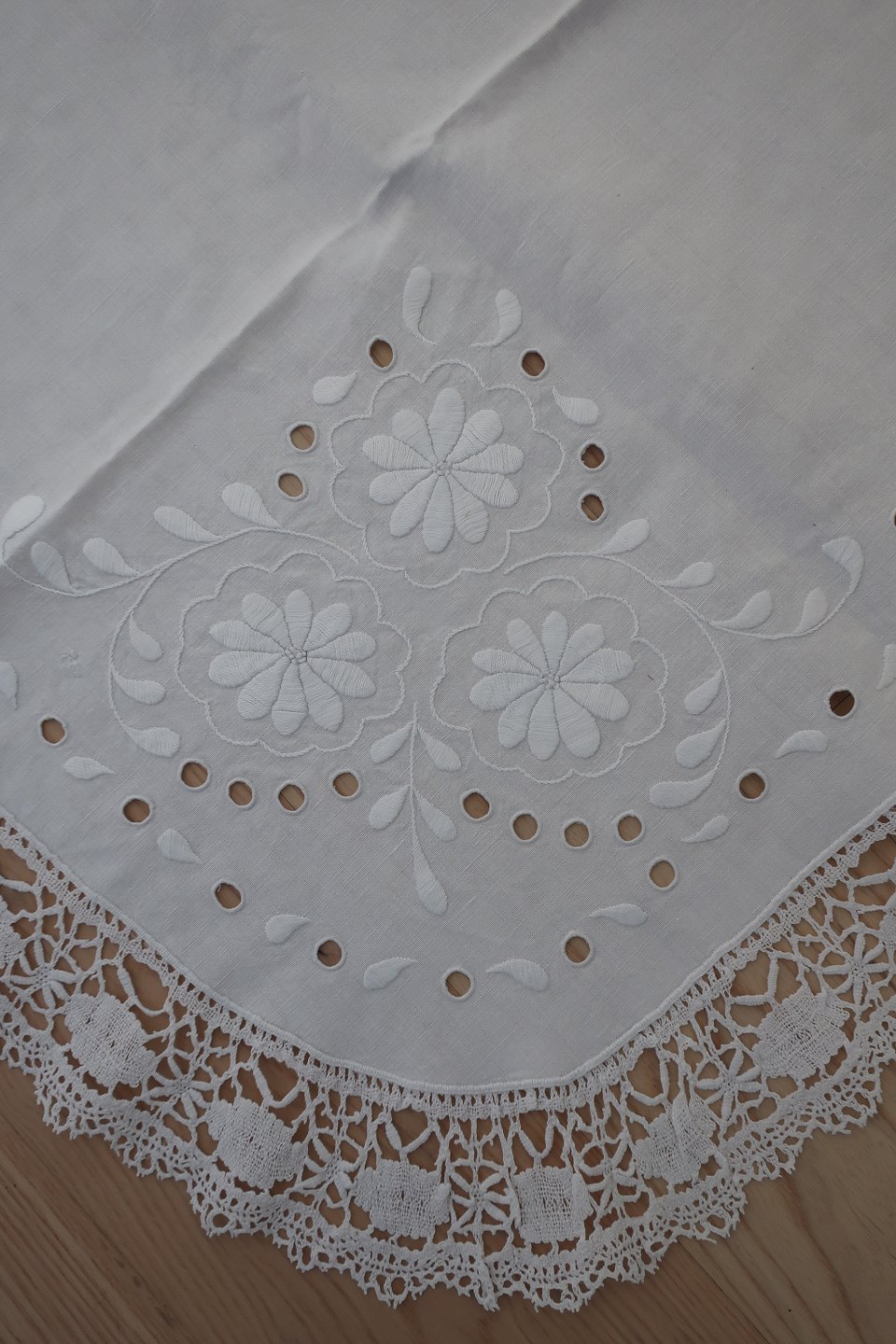 Smukt gammelt broderet stykke med hvidt håndbroderi