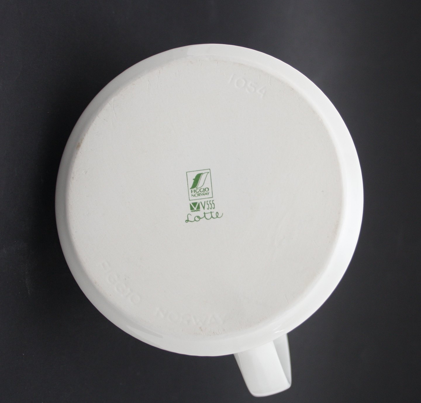 Figgjo Flint, Turi-design, Norway, Lotte. Kaffekande. Nr. 1054. Designet af Turi Gramstad Oliver. I produktion fra 1962 til 1985. Højde 18 cm. Længde 20 cm. Flot ubrugt stand, mint condition. Pris: 350 kr. stk. Lager: 1