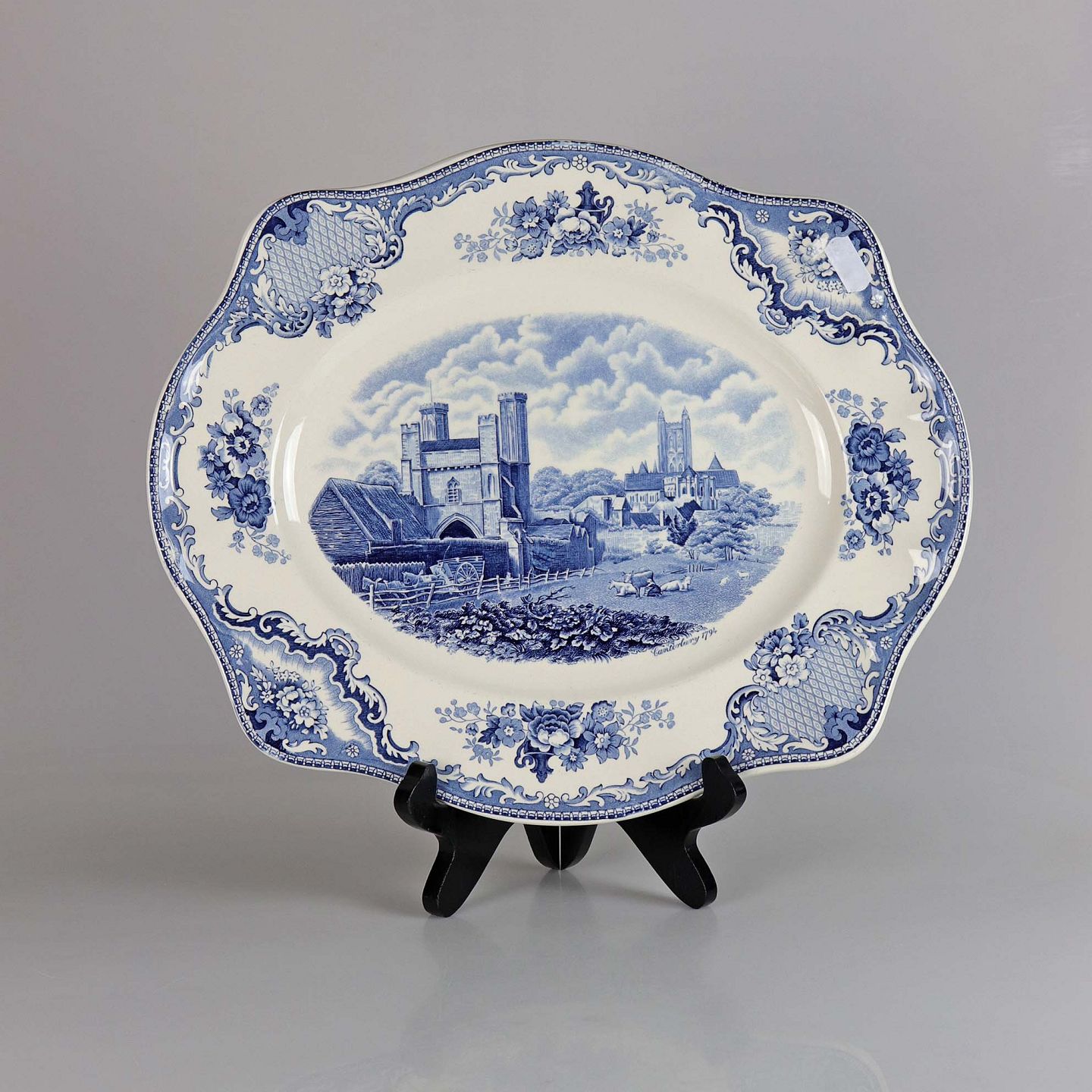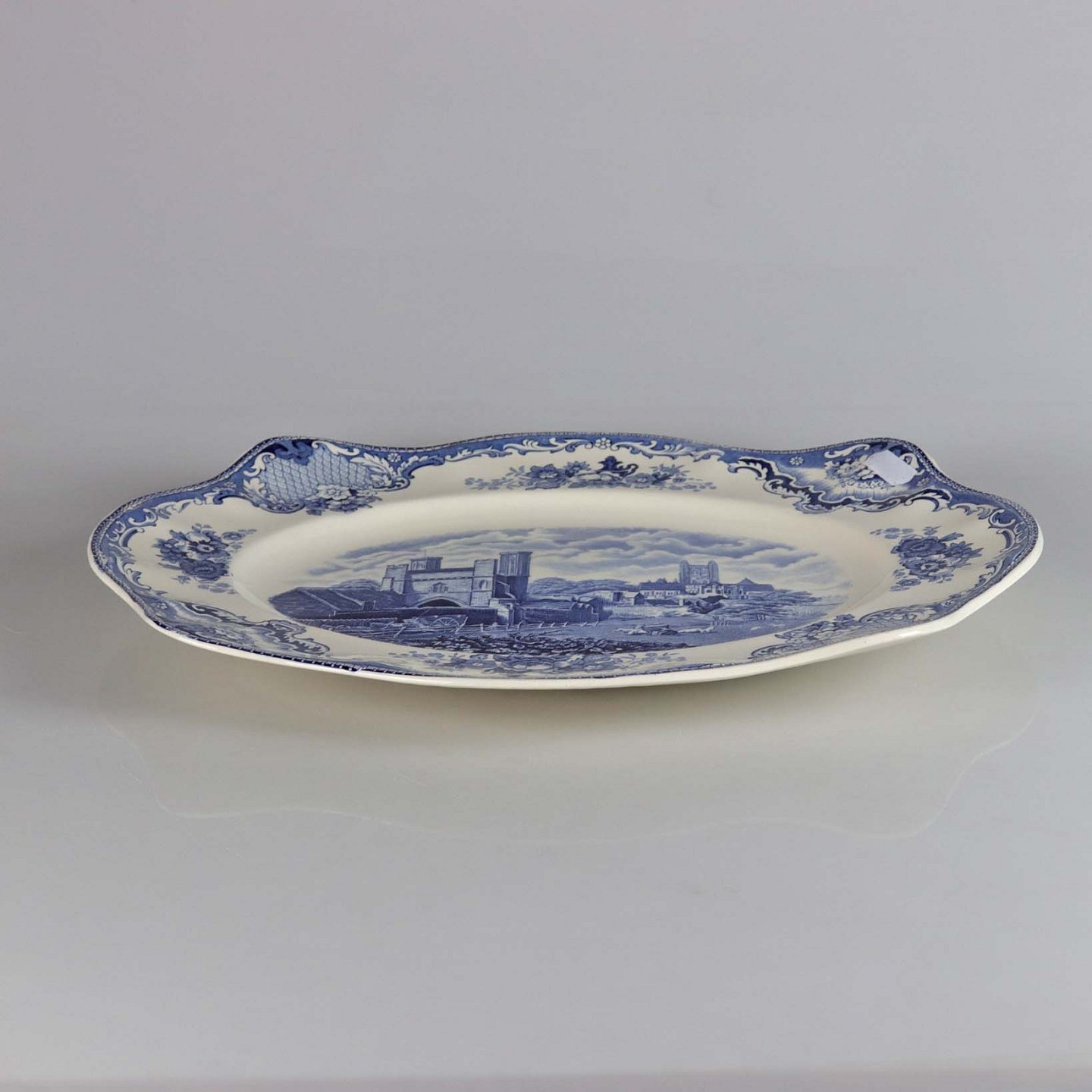Ovalt fad i engelsk fajance fra stellet Old Britain Castles blue