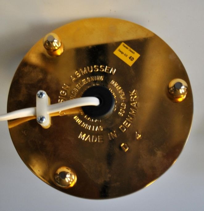Hamlet drop lamp - Asmussen design, 20th century Middelfart, Denmark. With 5 drops. Model D 4. Gilt brass. Stamped. Height with electrical installation: 31 cm.