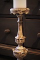 Et par antikke fransk 1800 tals træ lysestager med rest af gammel sølvbelægning og patina. Højde: 48cm.