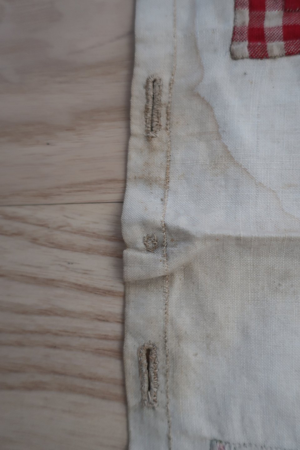 Prøveklude blev brugt til at vise forskellige syteknikker - hvor god man var til hver enkelt syteknik, se f.eks. også knaphullerne, isætning af stropper og kantningen