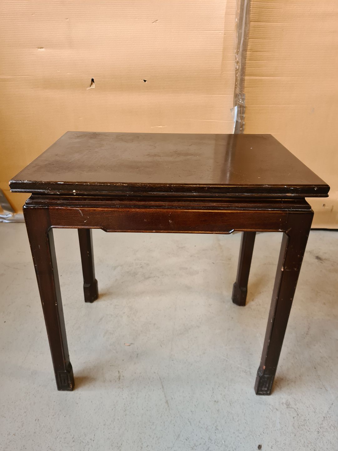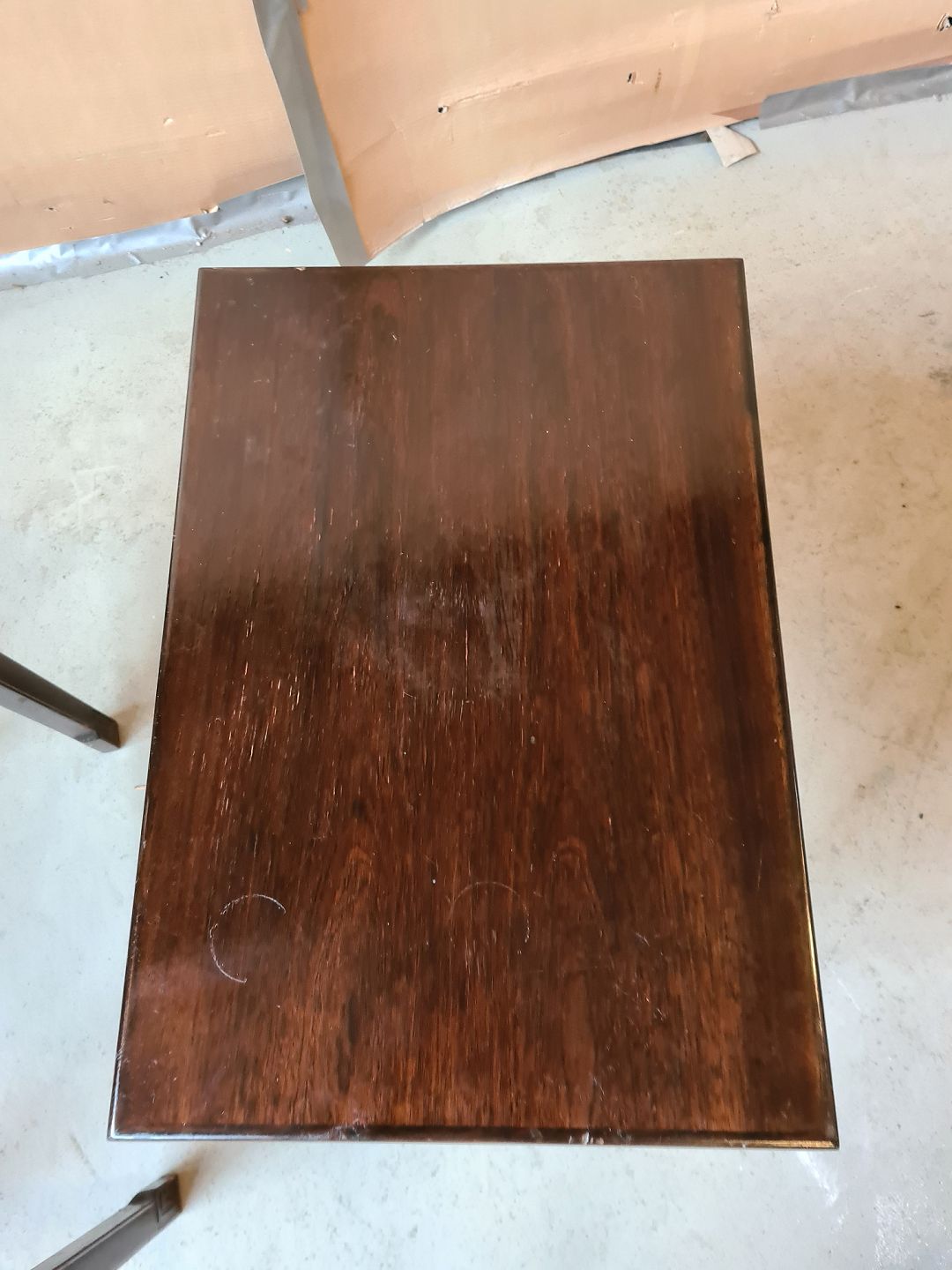 2 Lampeborde i fineret mnahogni, fra 1980erne.