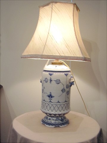 Kongelig musselmalet riflet - stor petroleumslampe omlavet til el.