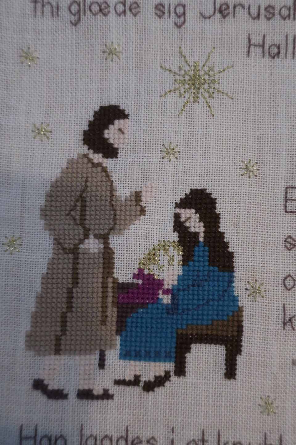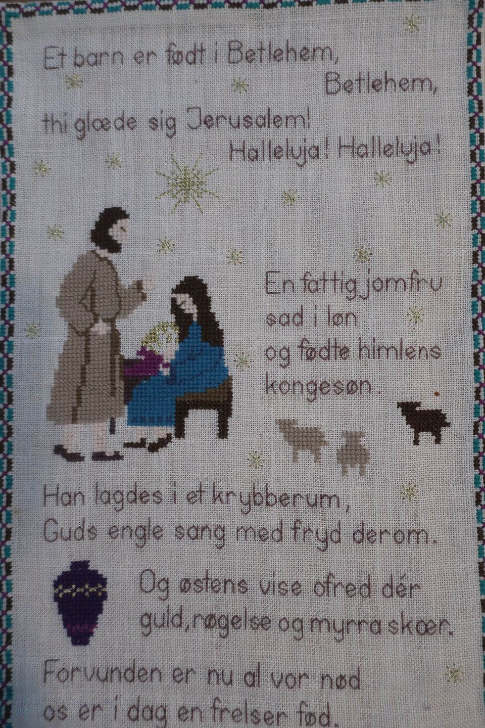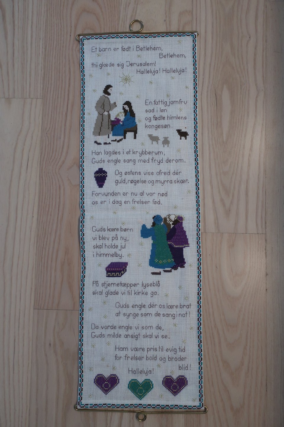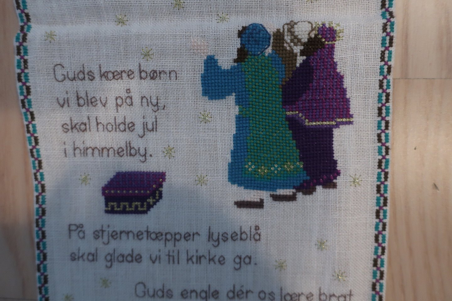 Gammel smuk jule-ophæng, håndbroderet med digt