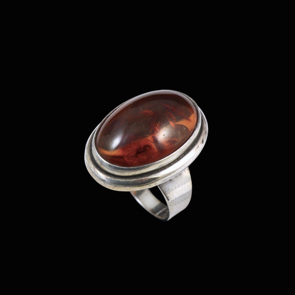 Hermann Siersbøl. Ring i sterling sølv med rav.