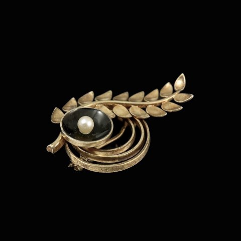 A. Michelsen. Broche i forgyldt sterling sølv med emalje og perle.