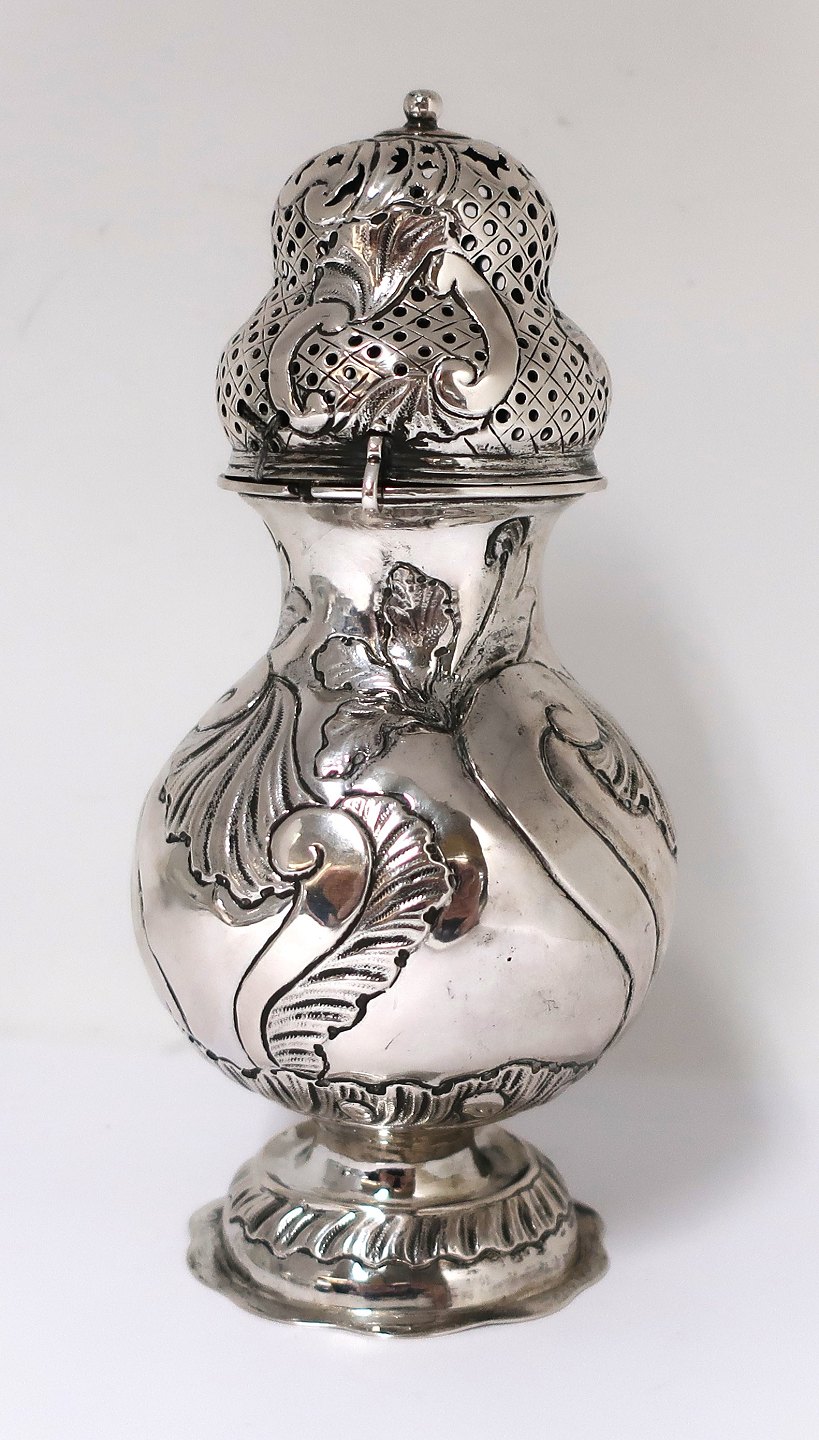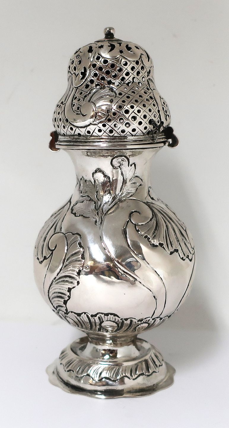 Thomas Andreas Westrup, København. Sølv strøbøsse (830). Højde 16 cm. Produceret 1763