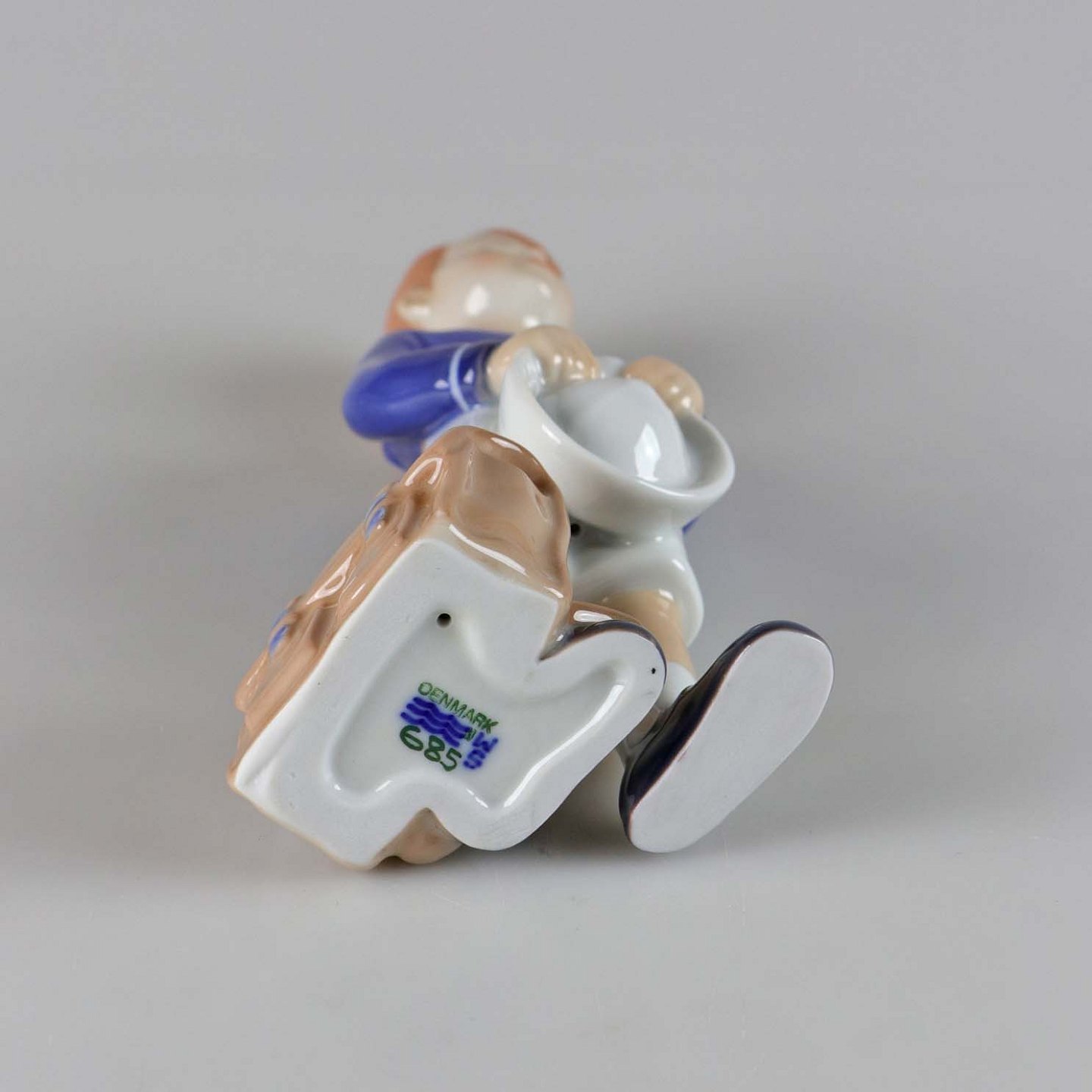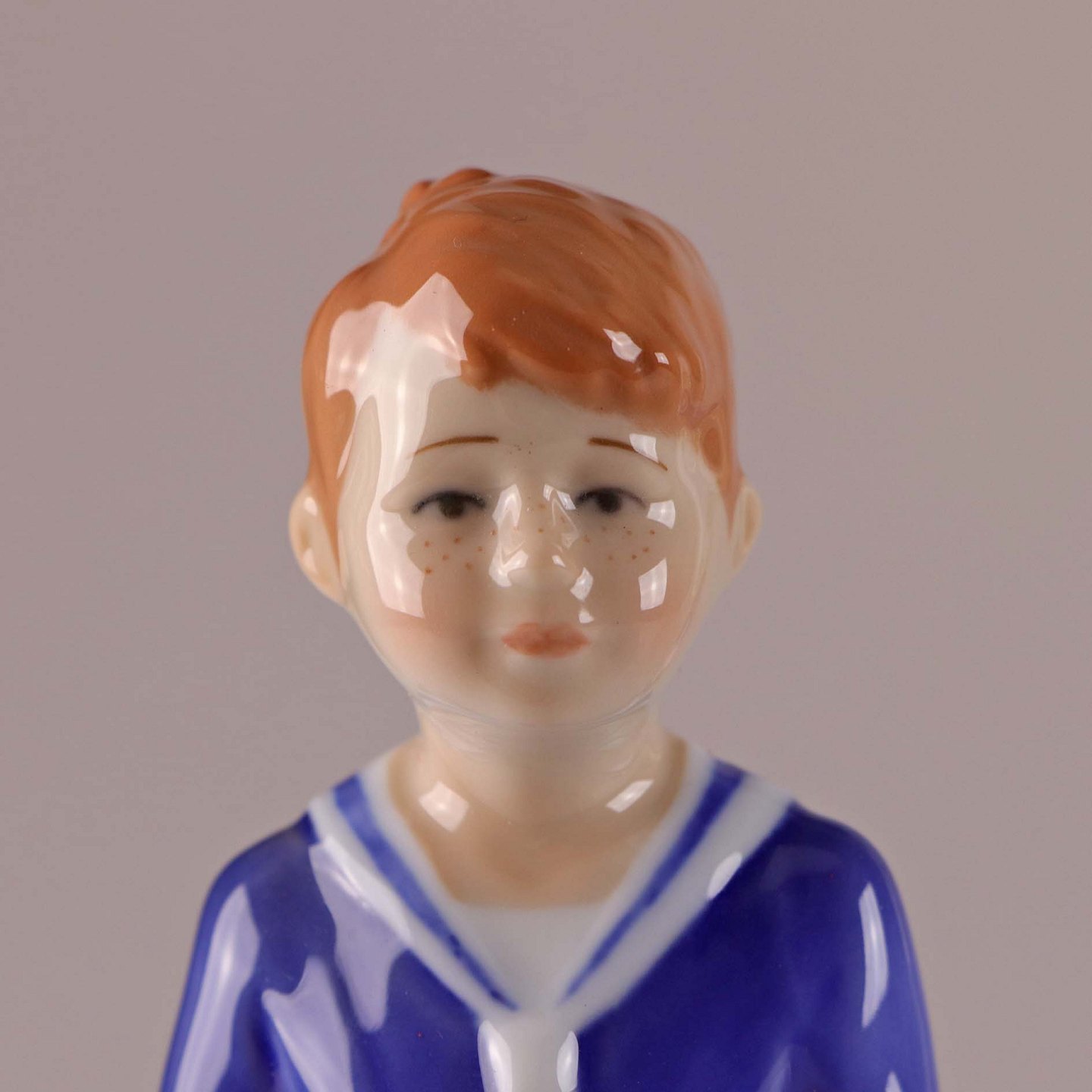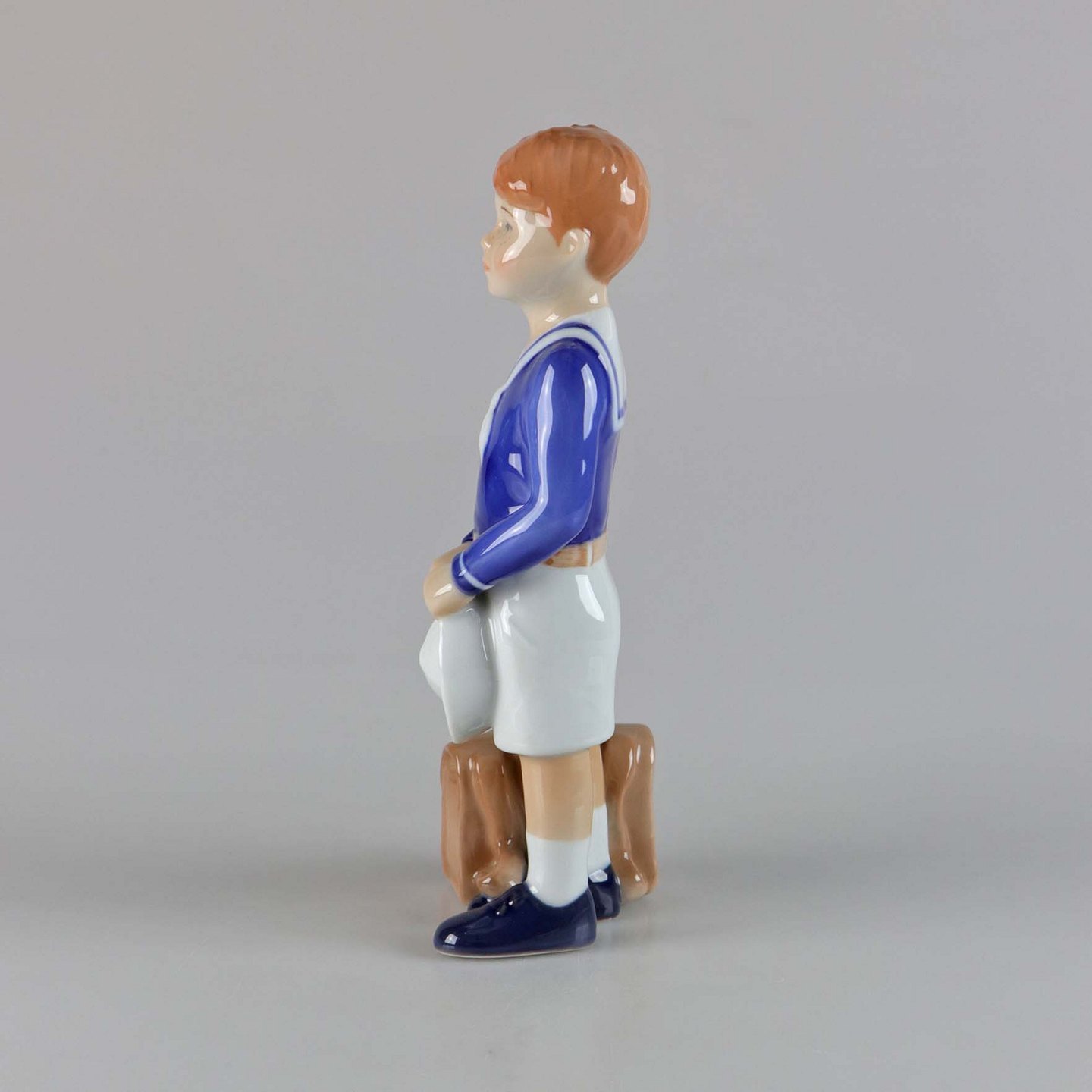 Figur i porcelæn med motiv af en dreng iklædt skoleuniform og med skoletaske no 685
