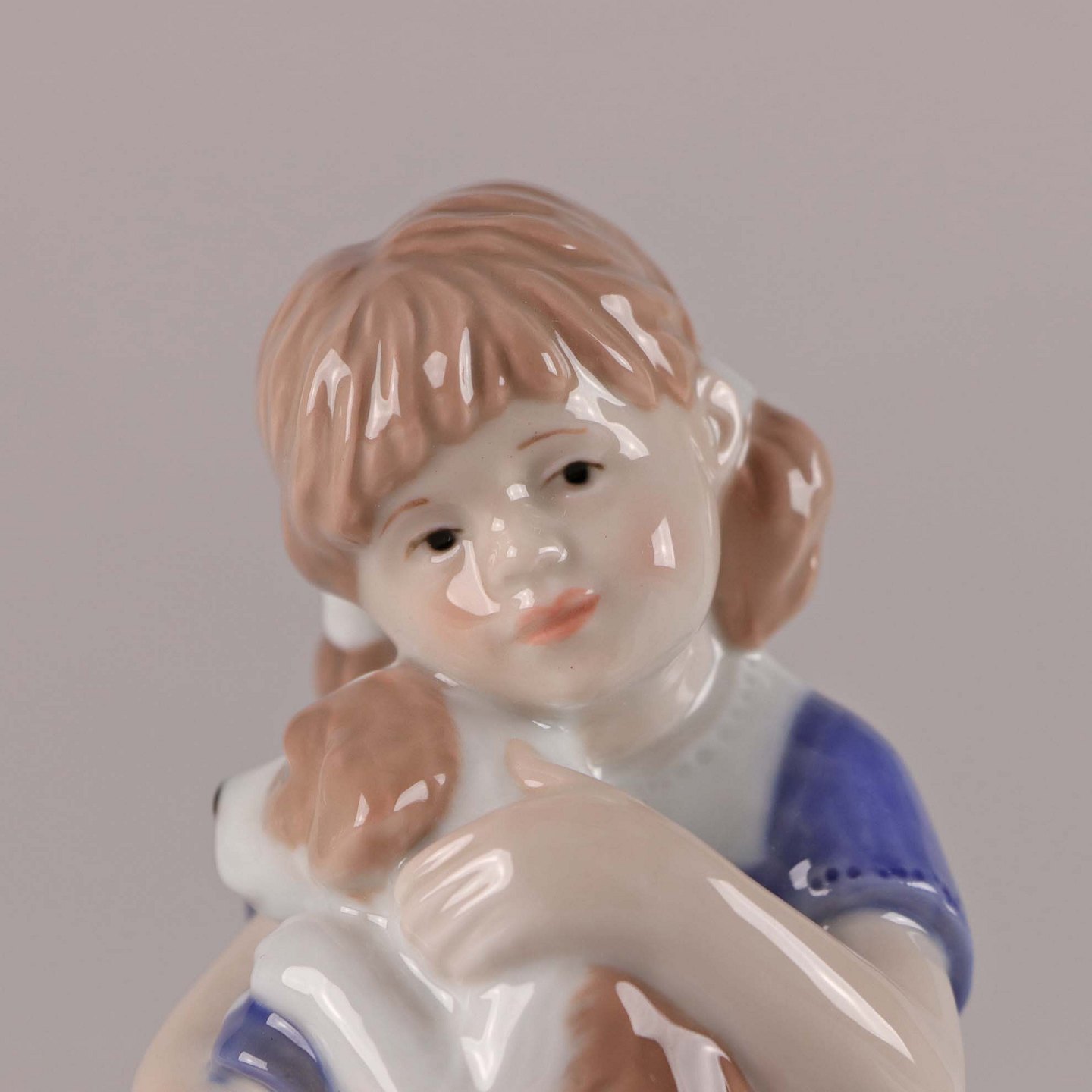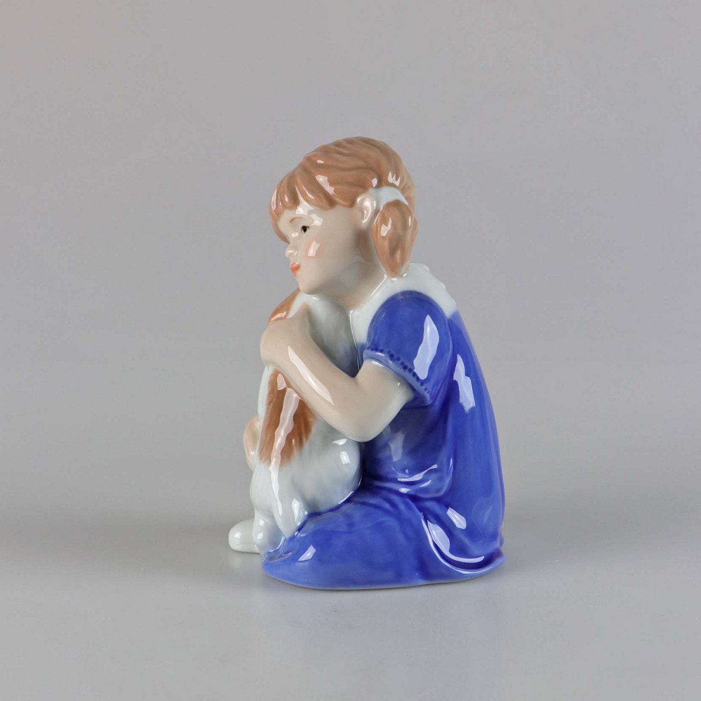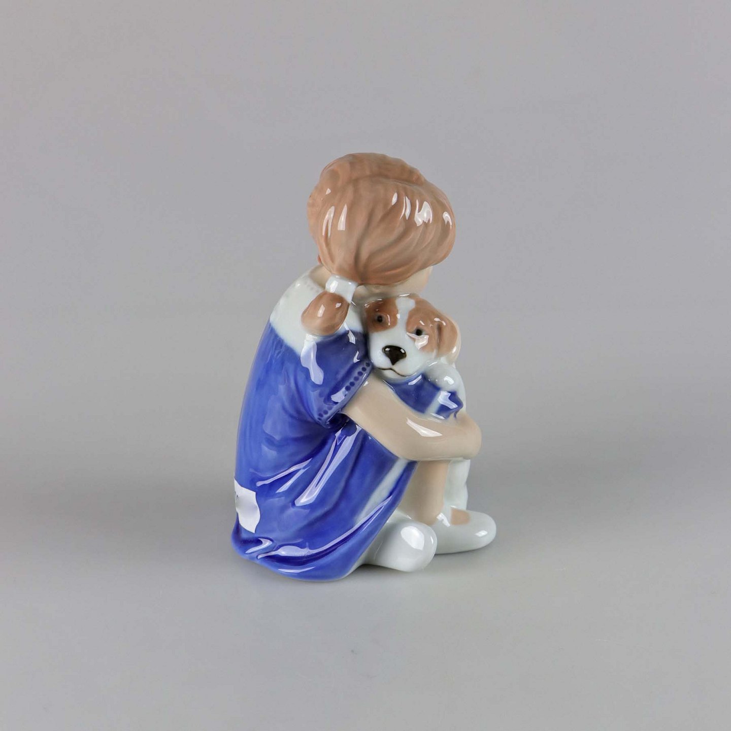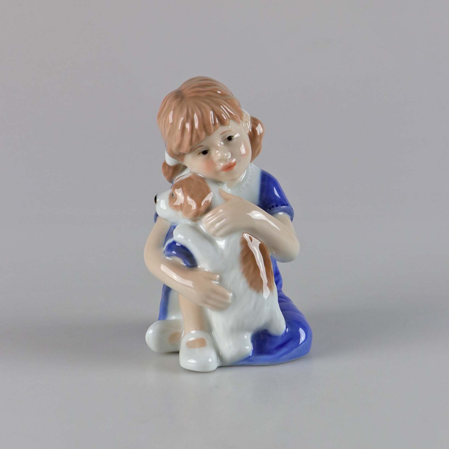 Figur i porcelæn med motiv af pige med hundehvalp no 679