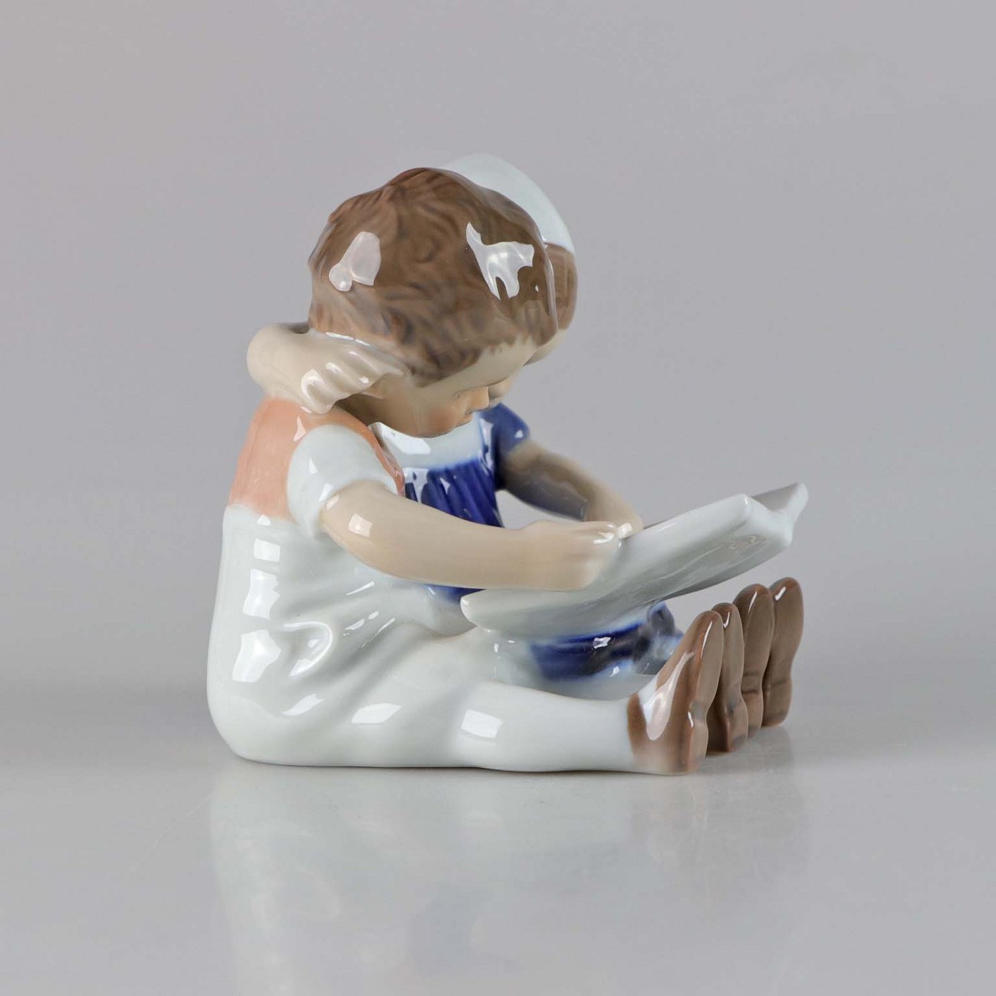 Figur i porcelæn med motiv af dreng og pige med bog no 402
