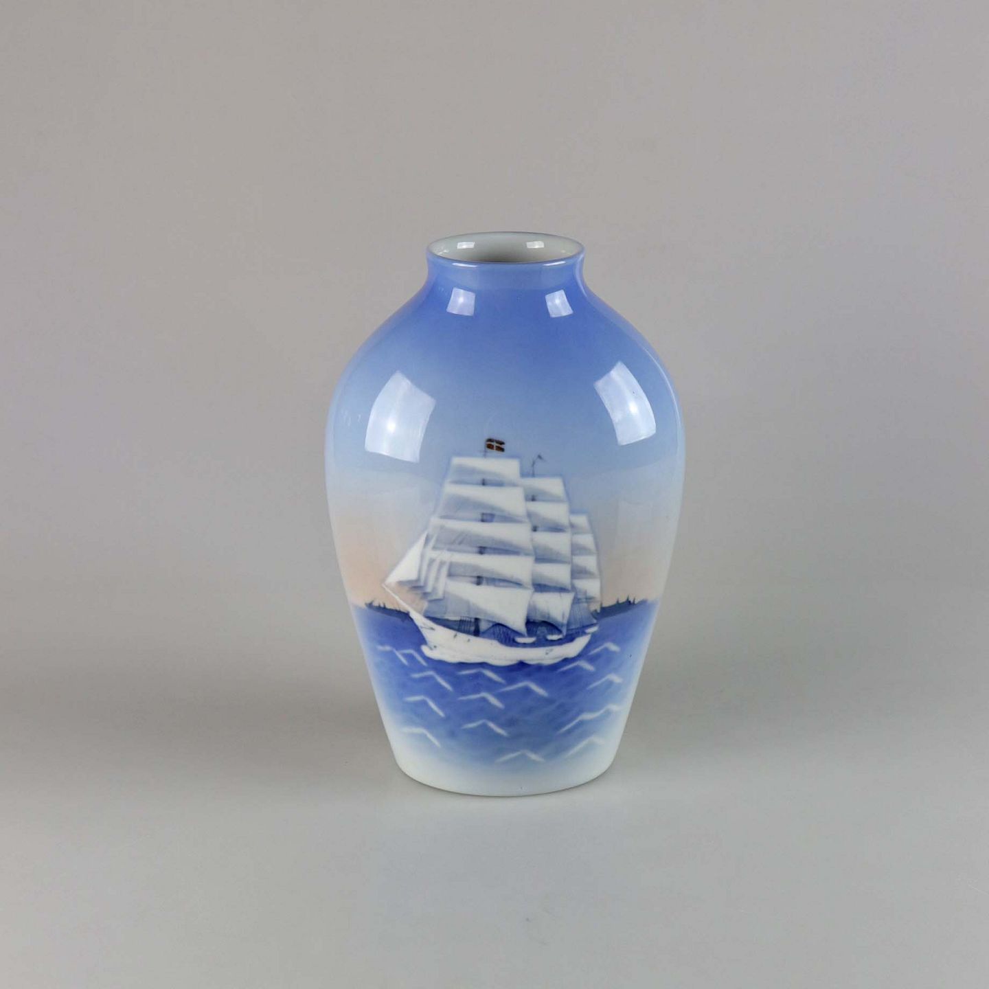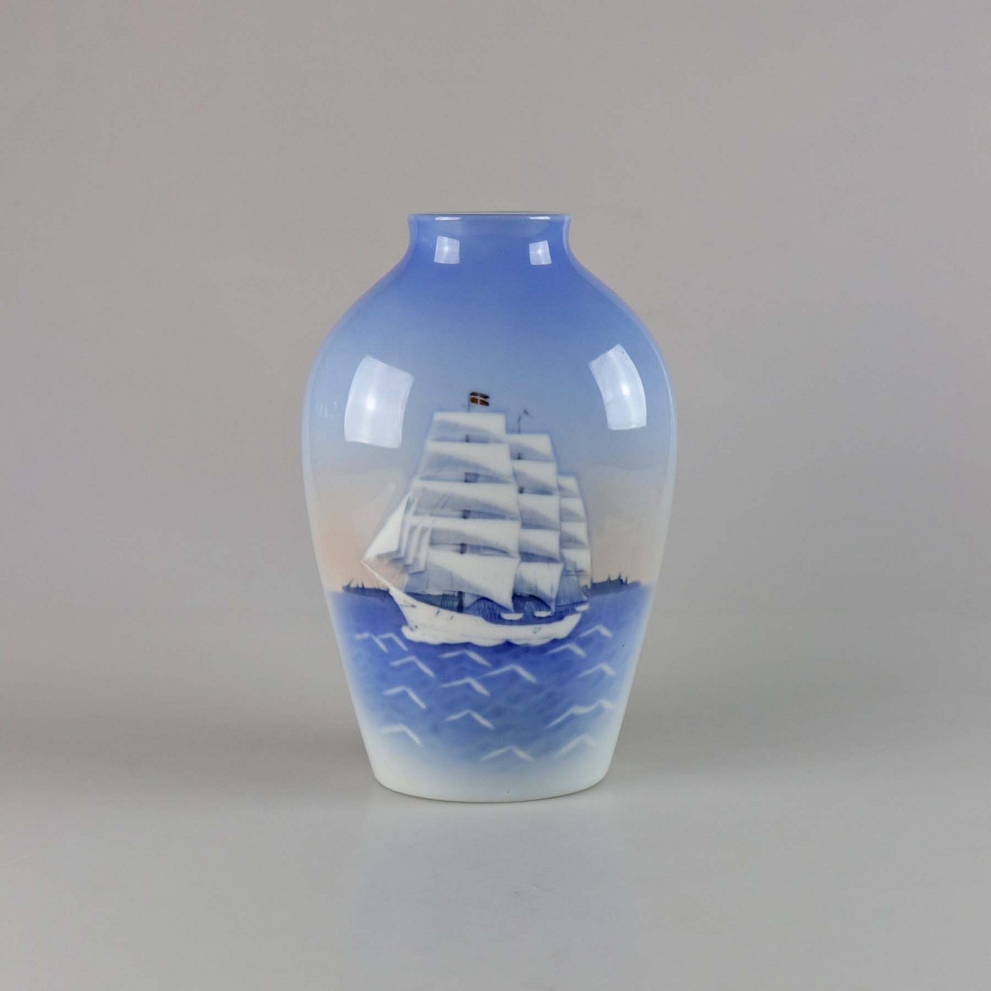 Oval vase i porcelæn med motiv af sejlskib no 1302/6239