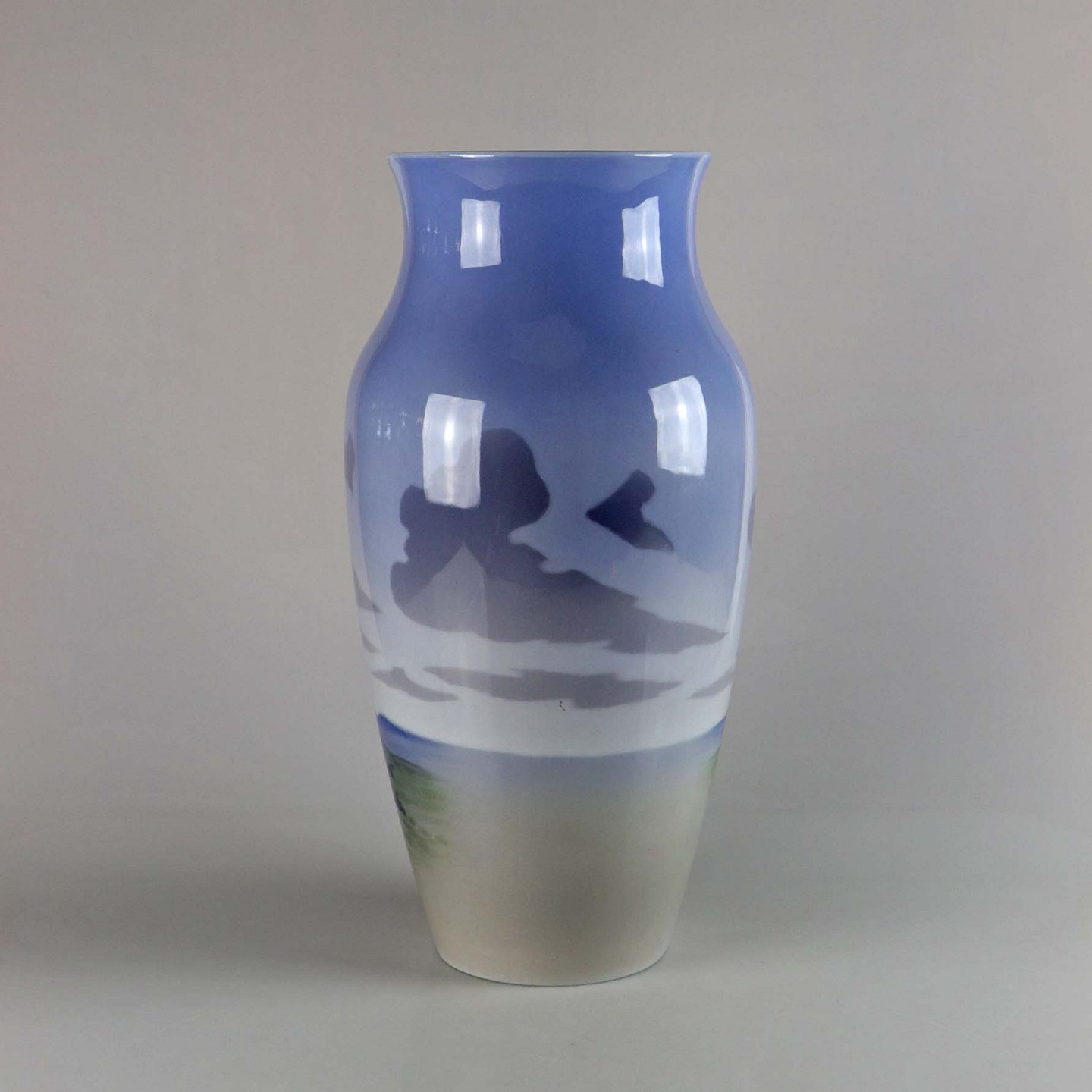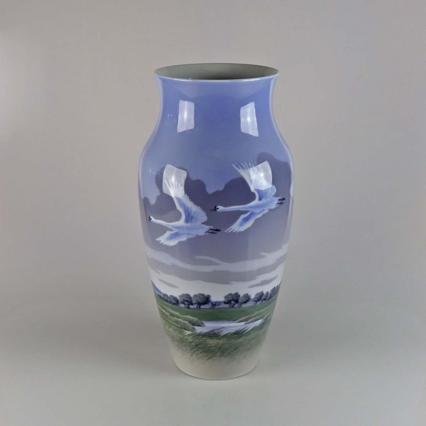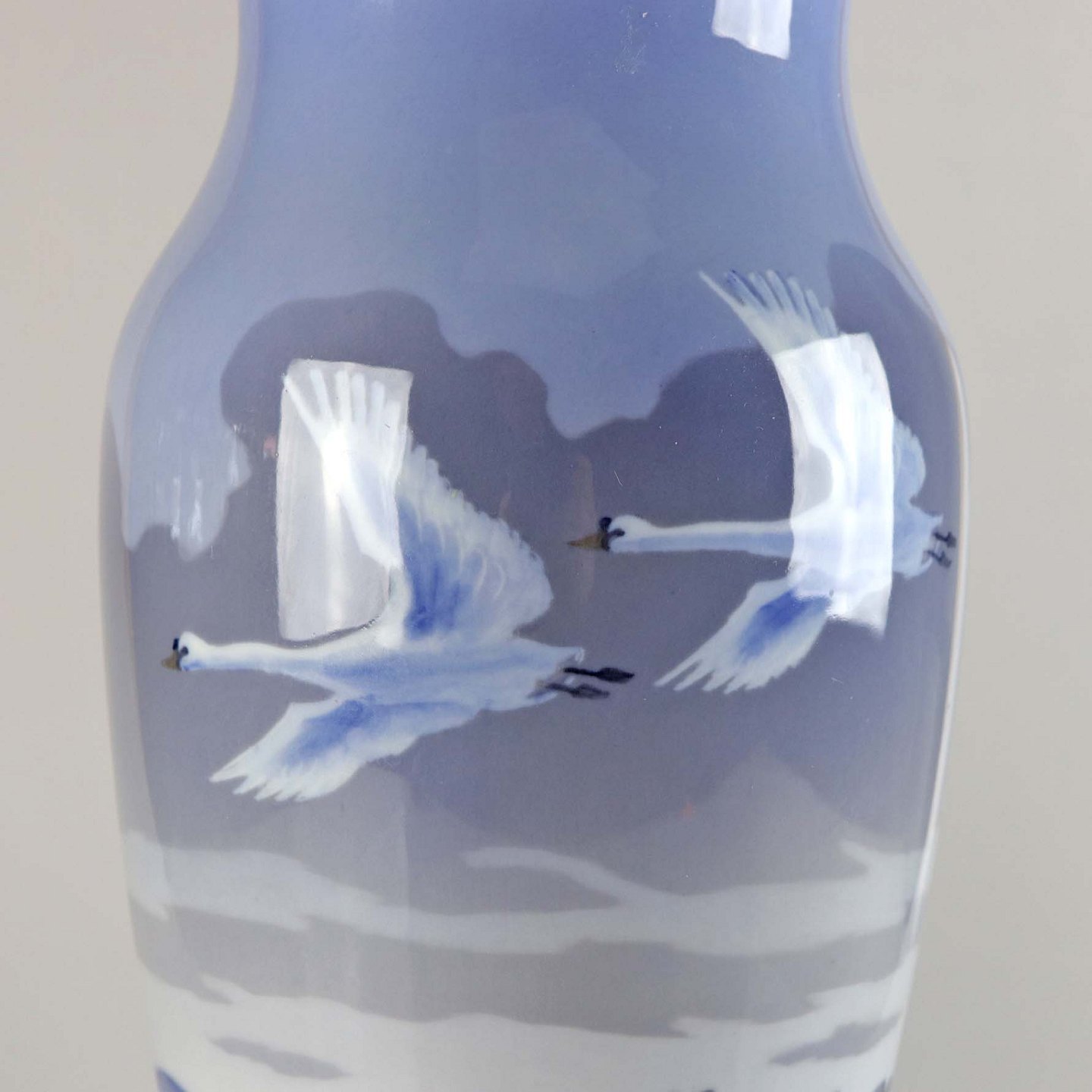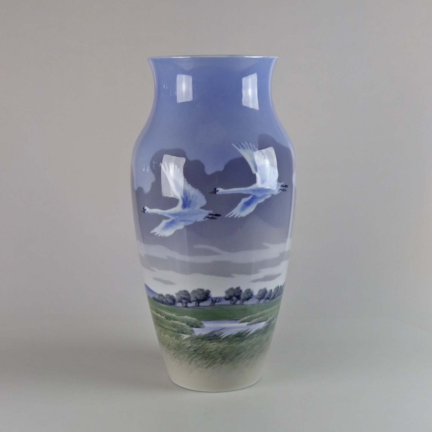 Vase i porcelæn med motiv af flyvende svaner no 1955/137