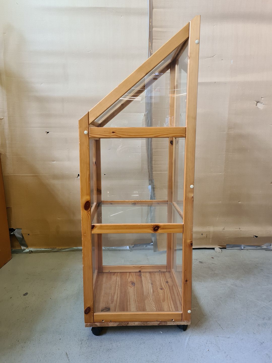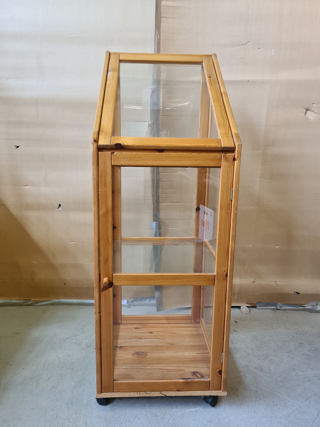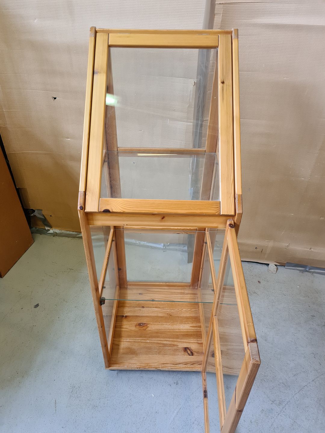 Glasmontre i massivt fyrretræ, fra 1980erne.
