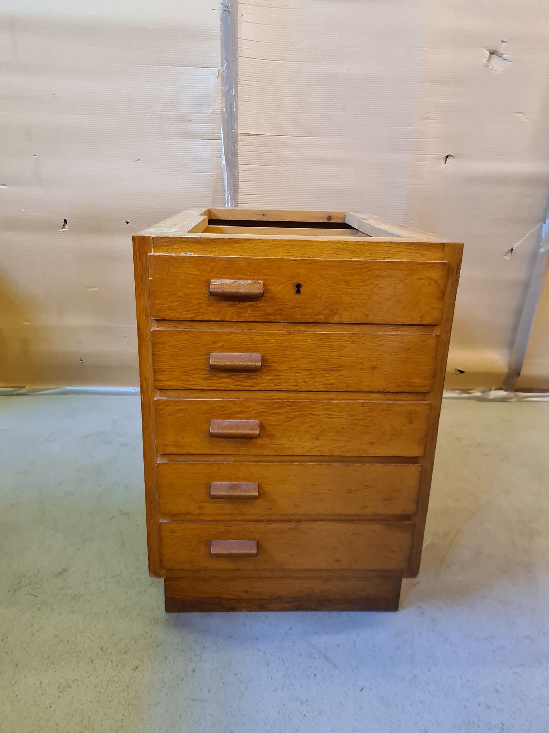 Skuffesektion i egetræ, fra 1940erne.