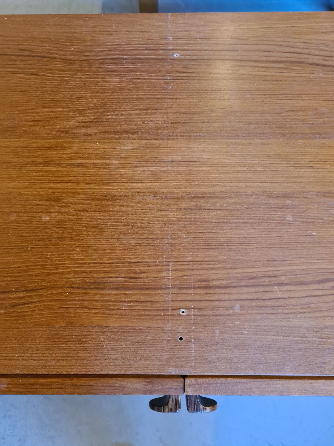 Det har brugsspor og der er huller i toppladen.(se foto)