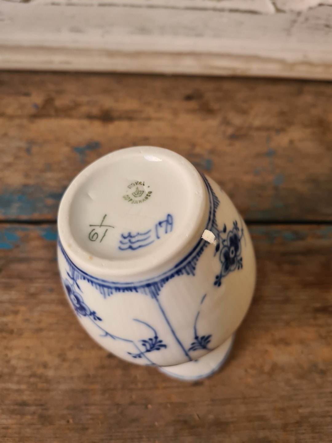 Royal Copenhagen Musselmalet riflet stor flødekande no. 61