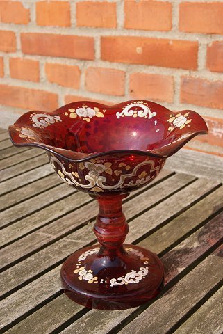 Ruby red candy bowl or bowl on high stand with nice decoration, and in very fine condition.
