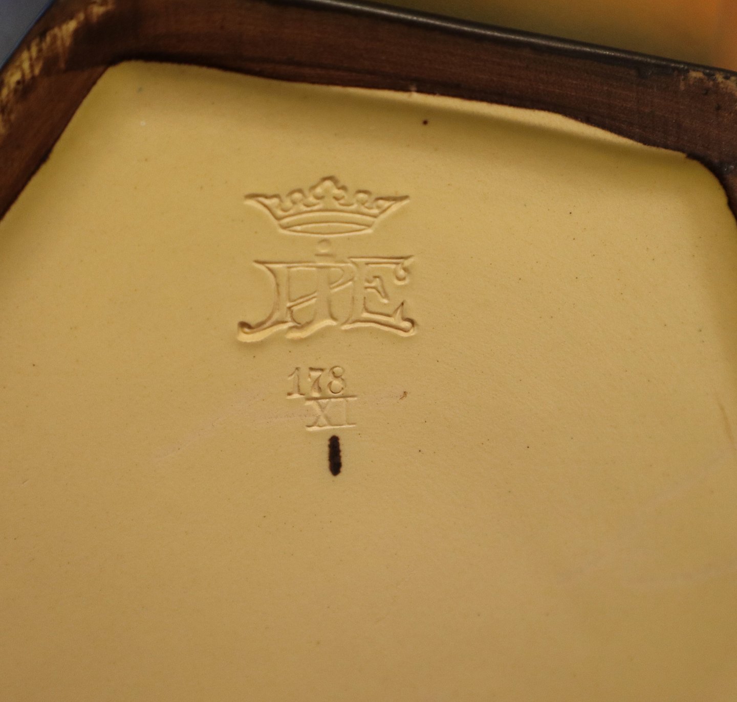 178 XI Sekskantet fad med svane 30.5 x 8.5 cm Axel Sørensen 1827 P. Ipsens Enke